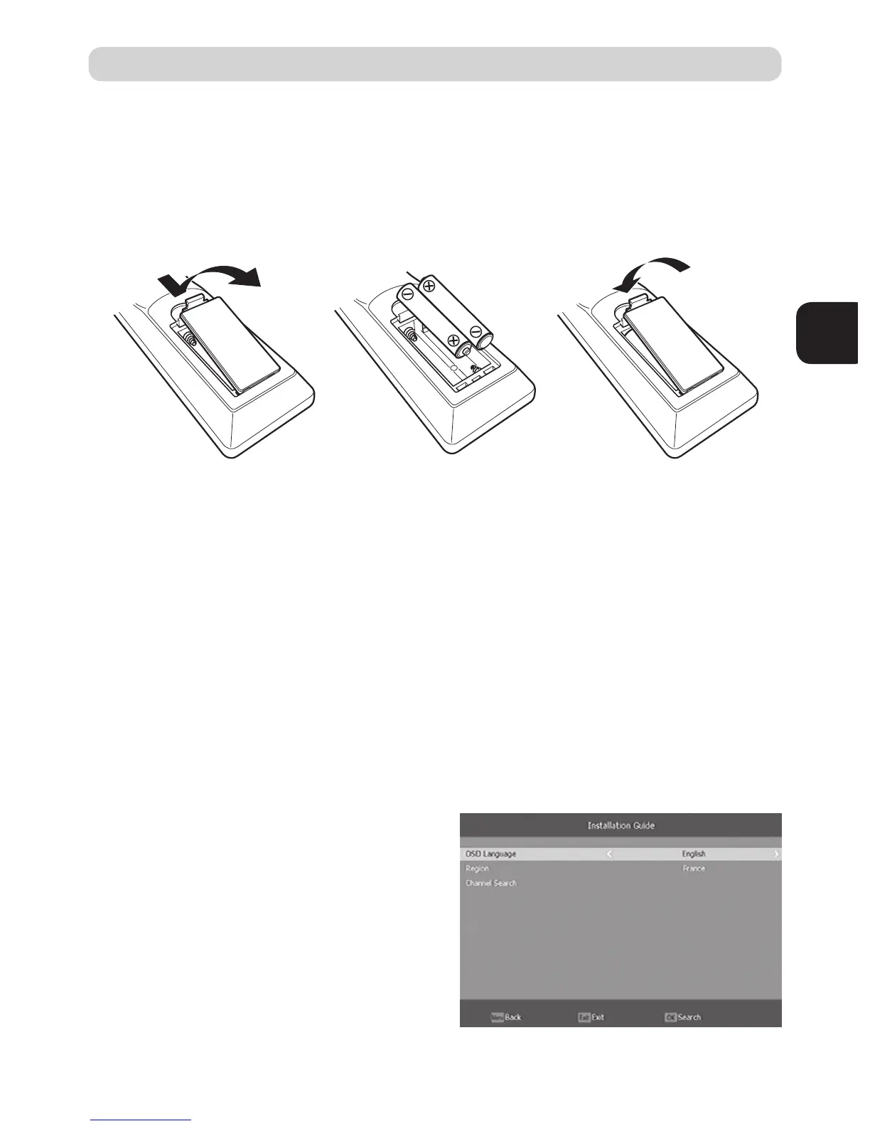 1. Otvorite poklopac za baterije 2. umetnite baterije 3. zatvorite poklopac