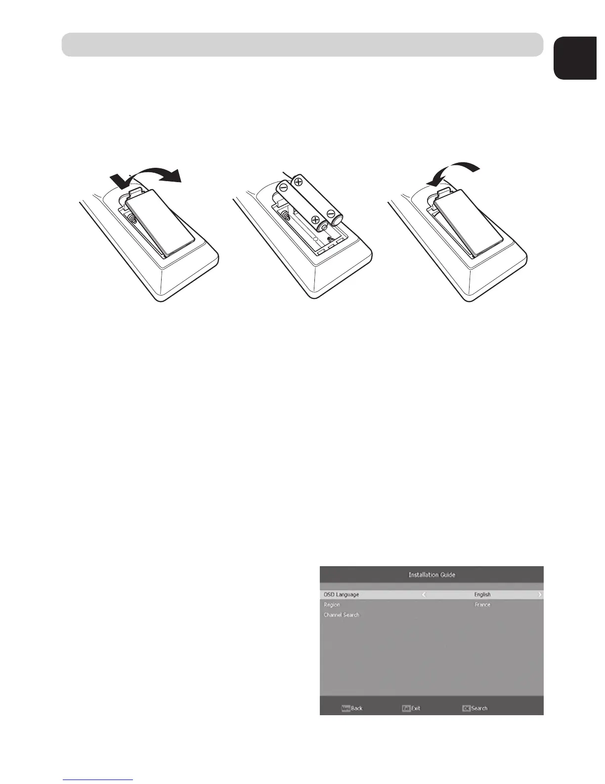 Paso 1: Abra la tapa del compartinento para las pilas del mando a distancia, inserte 2 pilas