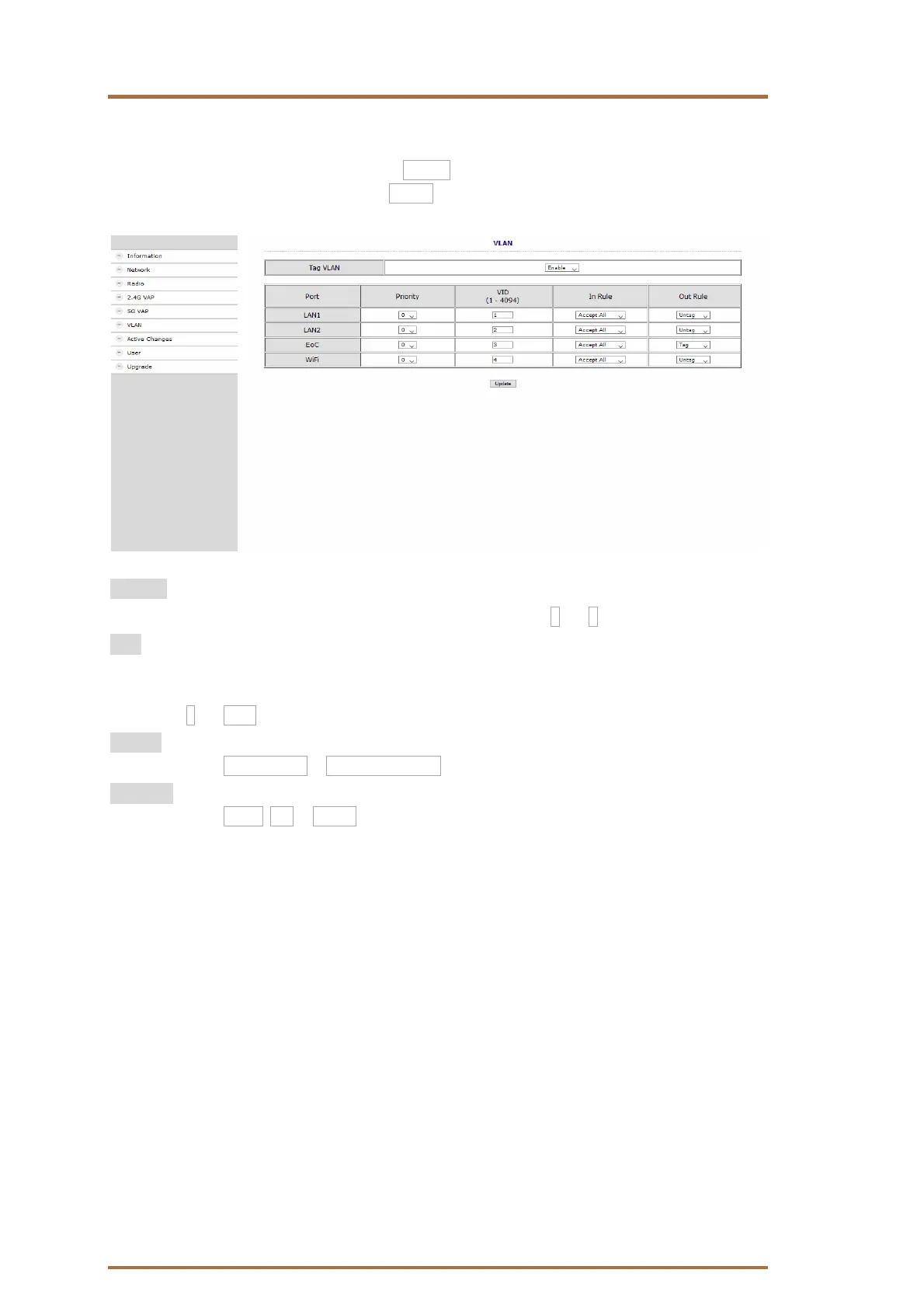 In the VLAN window, the Tag VLAN field is set to Disable by default.