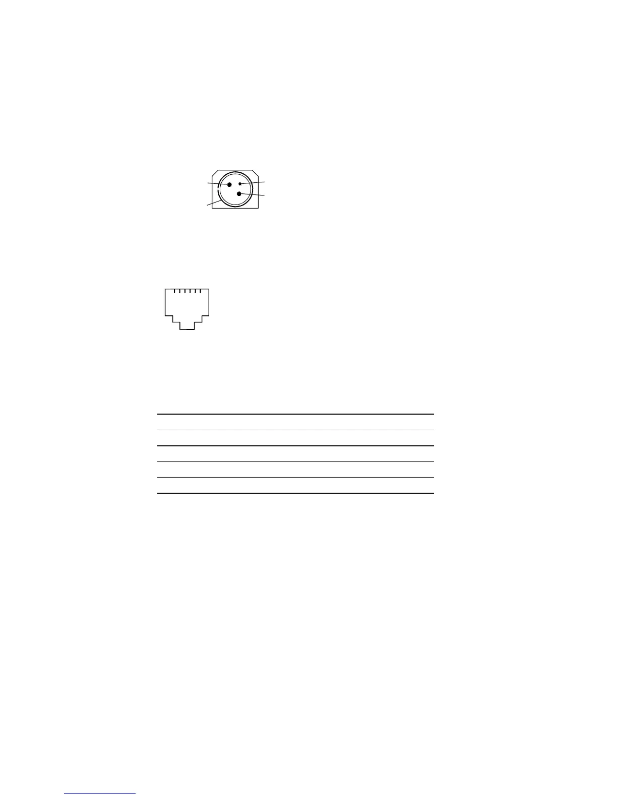 the power cable connector and pin assignments. The power cable connector is a 3-pin