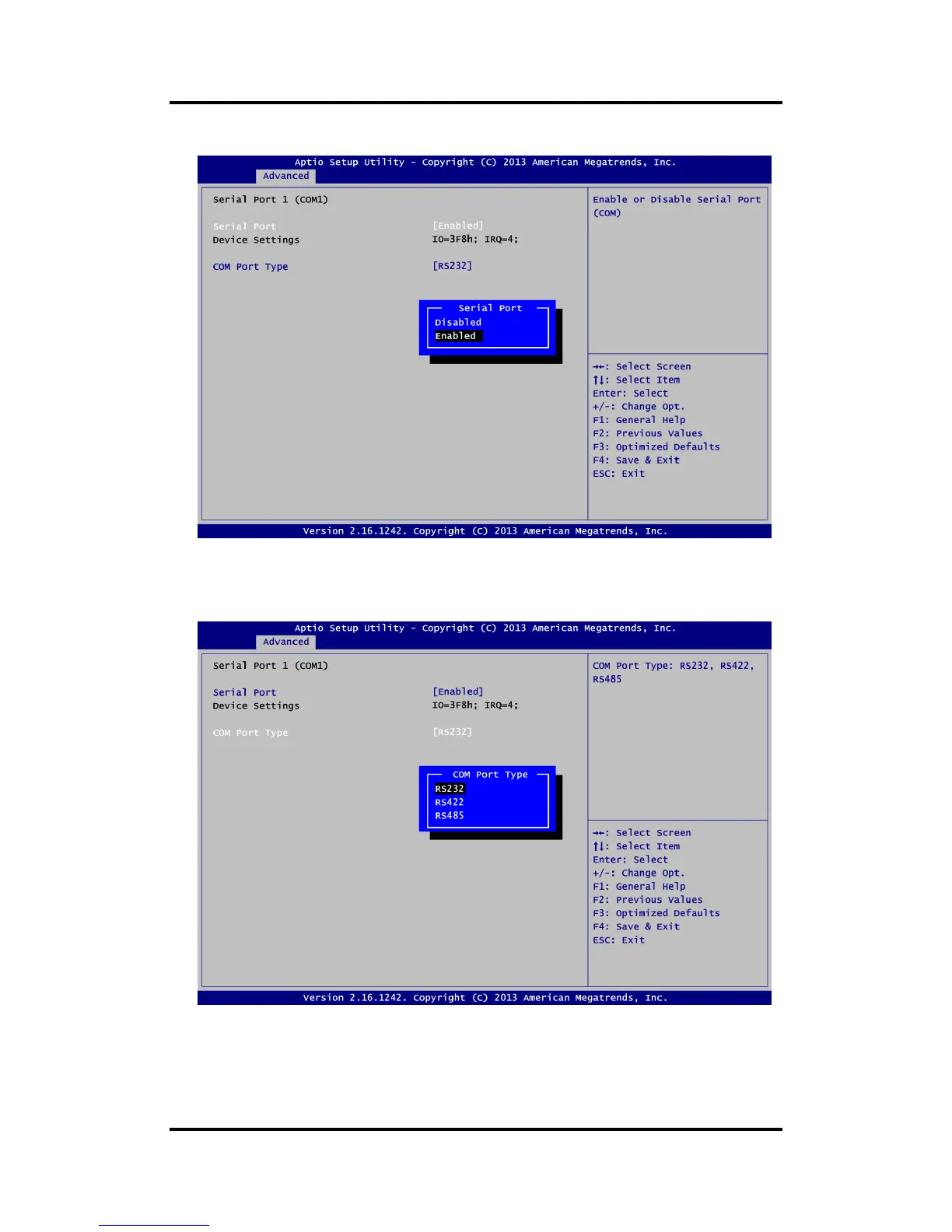 Enable or disable serial port 1. The optimal setting for base I/O address is 3F8h and for