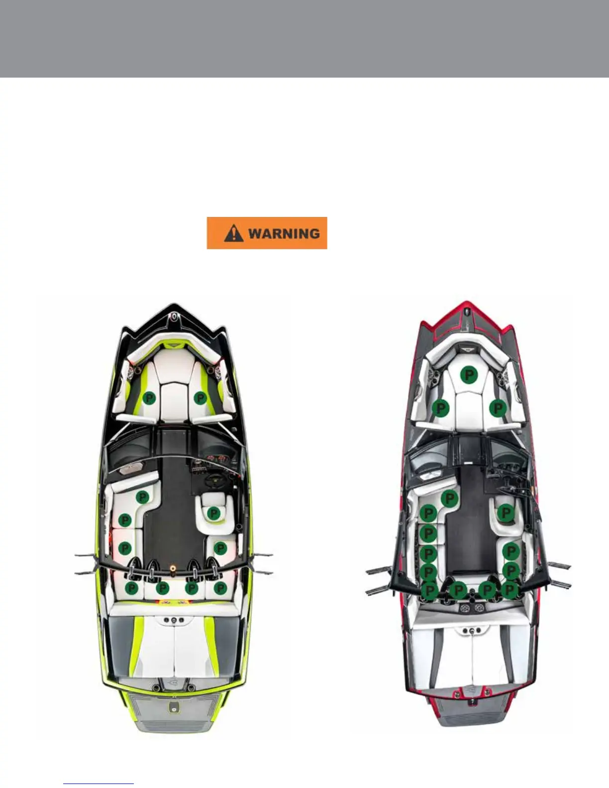 of stability and maneuverability. Never allow riders on the sun deck while the boat is in