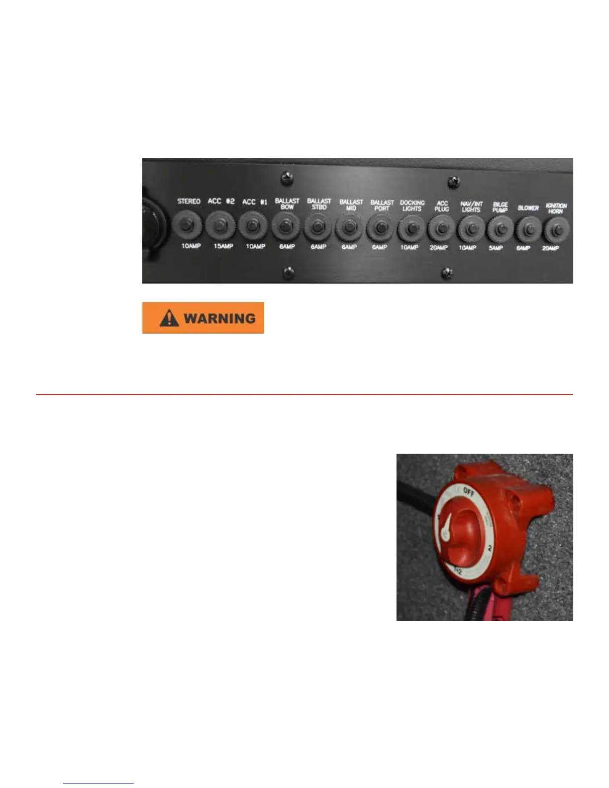 All major boat circuits are protected from shorng and overload by reseable circuit breakers. If a