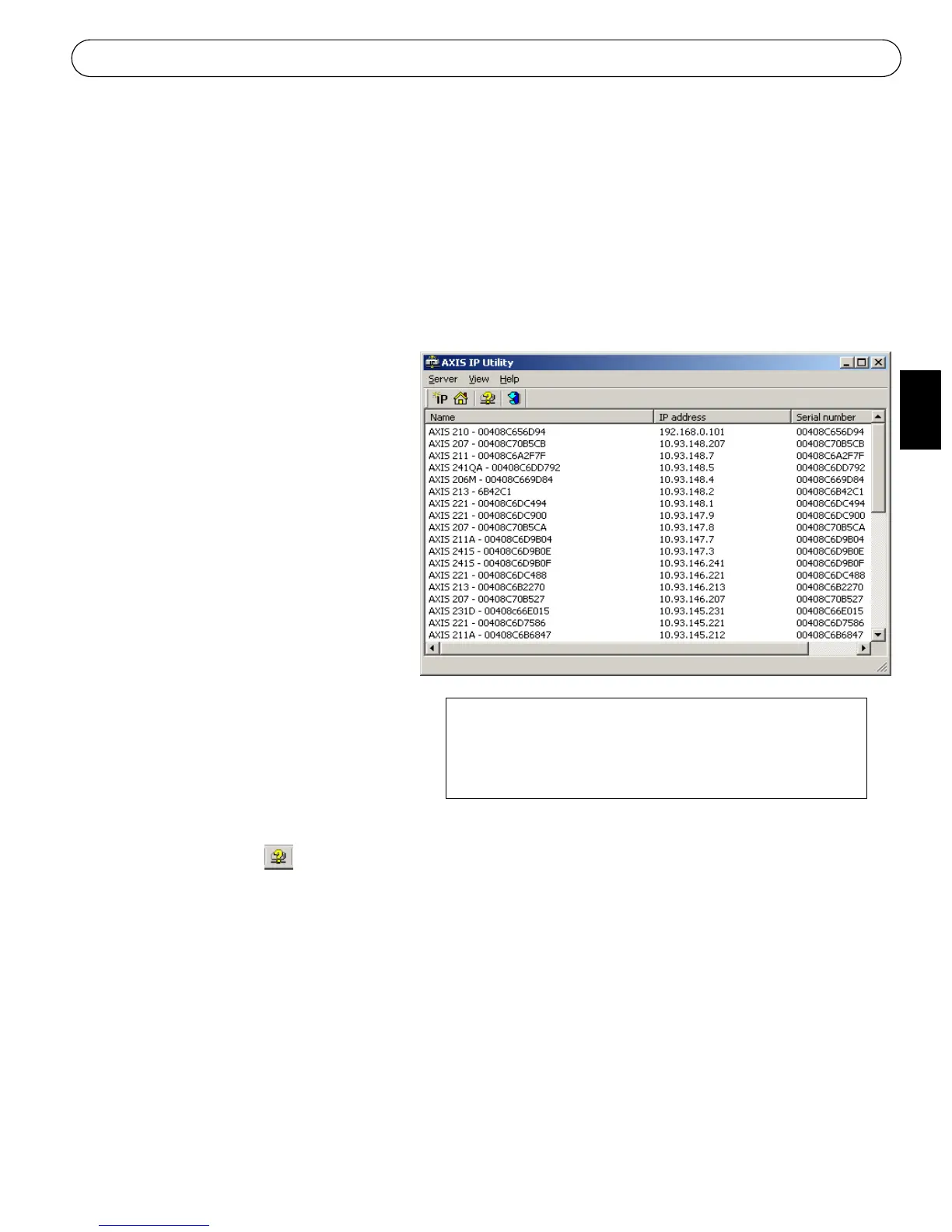 AXIS IP Utility is available on the CD supplied with this product, or it can be downloaded from