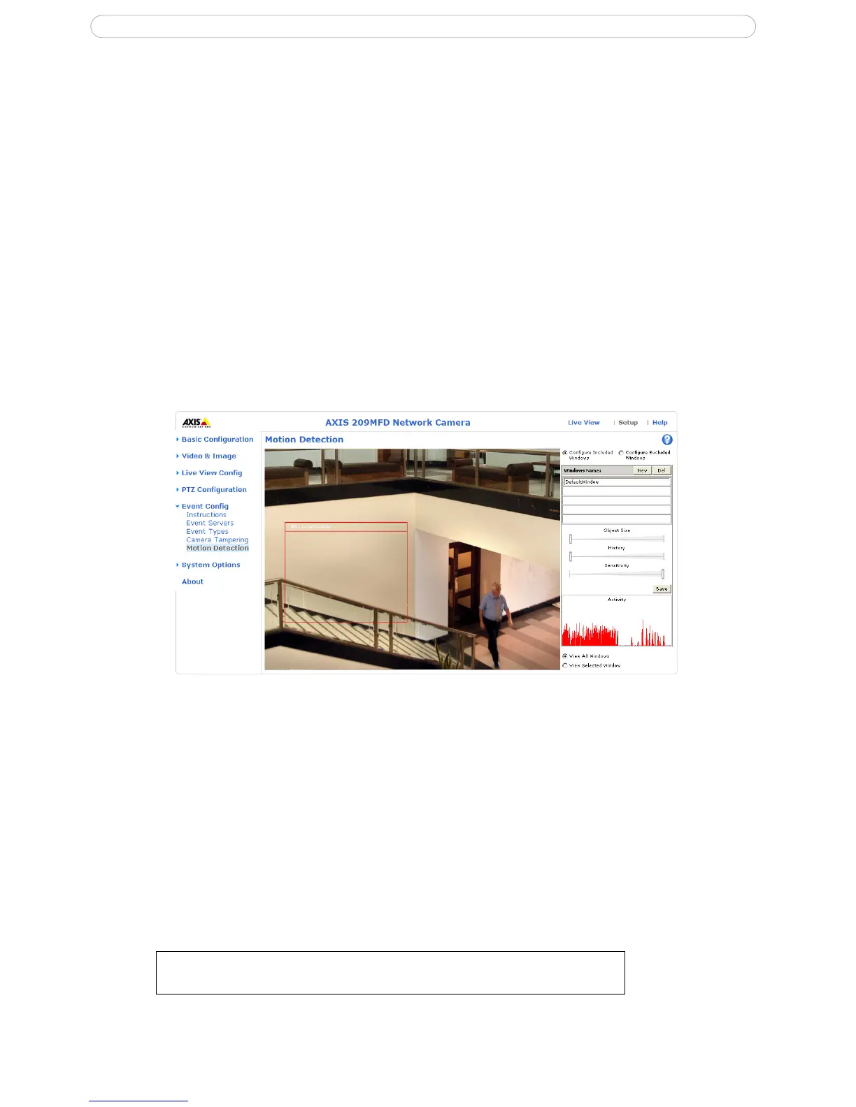 detected motion within an active window is then indicated by red peaks in the Activity window