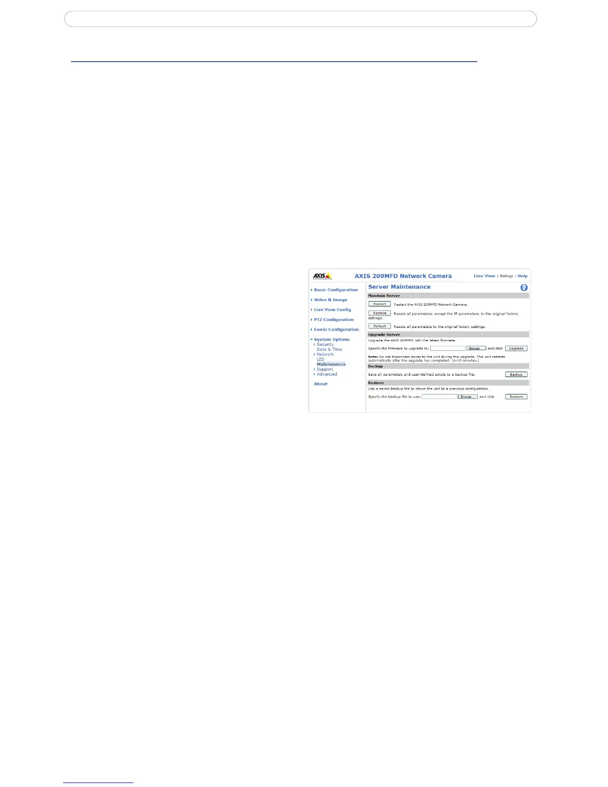 button to select the upgrade file to use, e.g. axis209mfdr.bin. Then click the Load button to restart