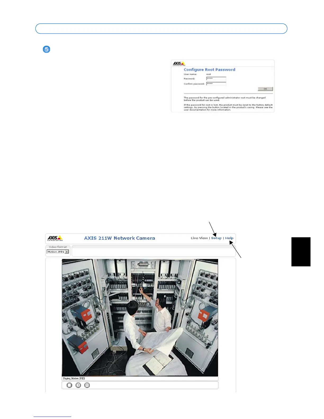 Viene visualizzata la pagina Immagini dal vivo del dispositivo AXIS 211W con i
