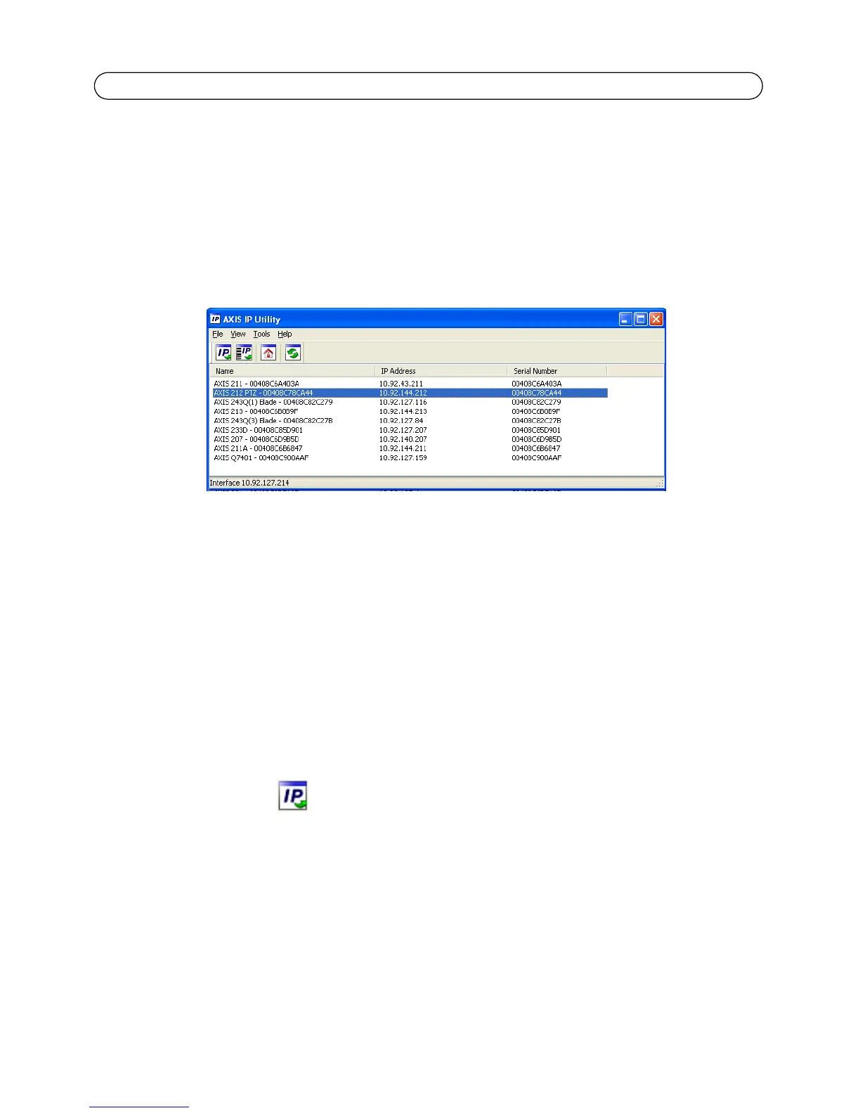 puede utilizarse también para configurar manualmente una dirección IP estática. AXIS IP Utility
