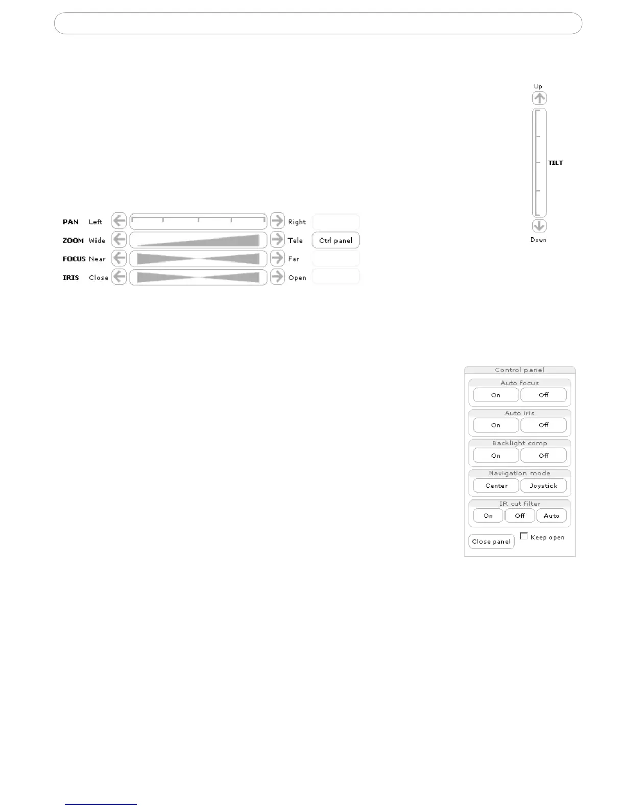 The Pan Tilt and Zoom bars control their respective functions in two different
