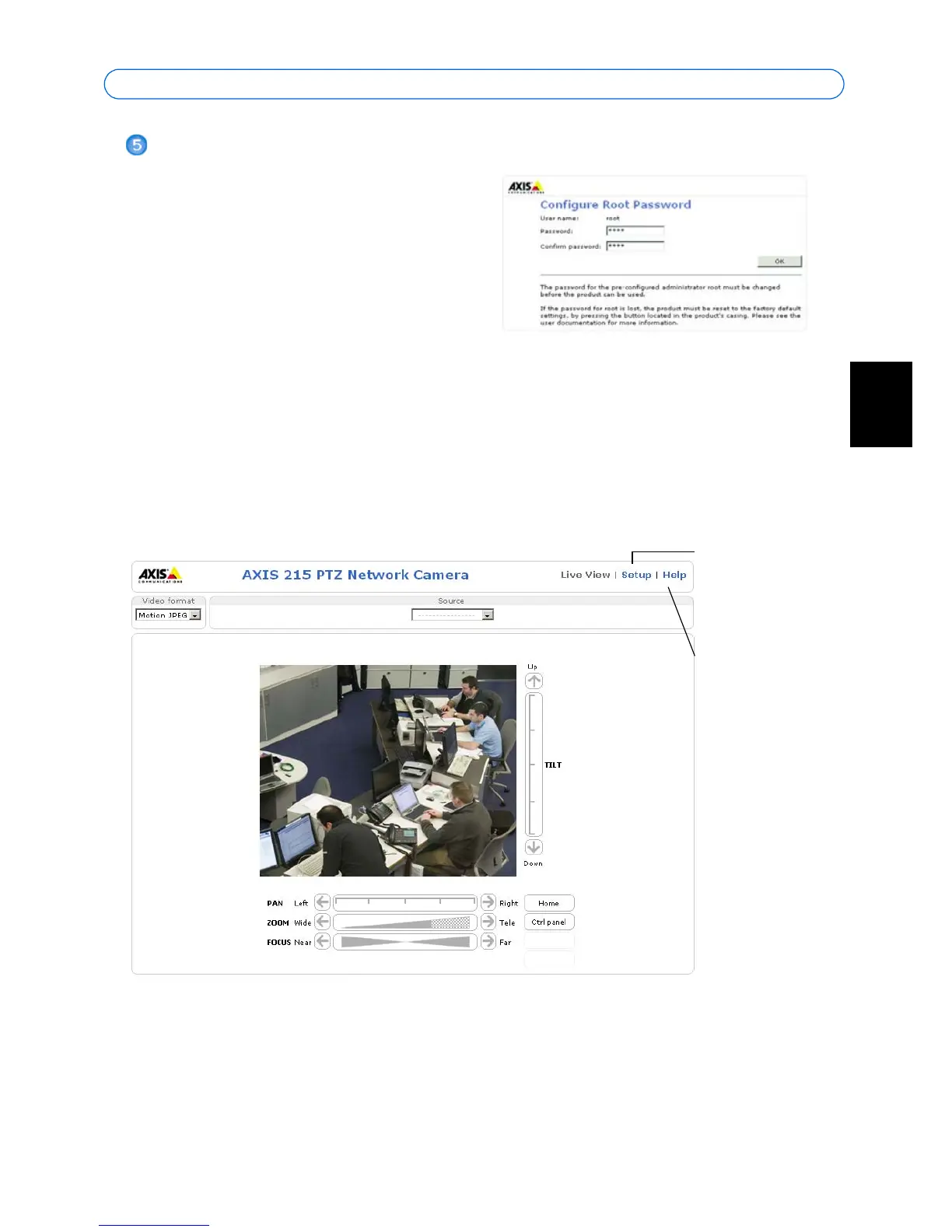 3. Enter the password as set above, and click OK. If the password is lost, the AXIS 215 PTZ