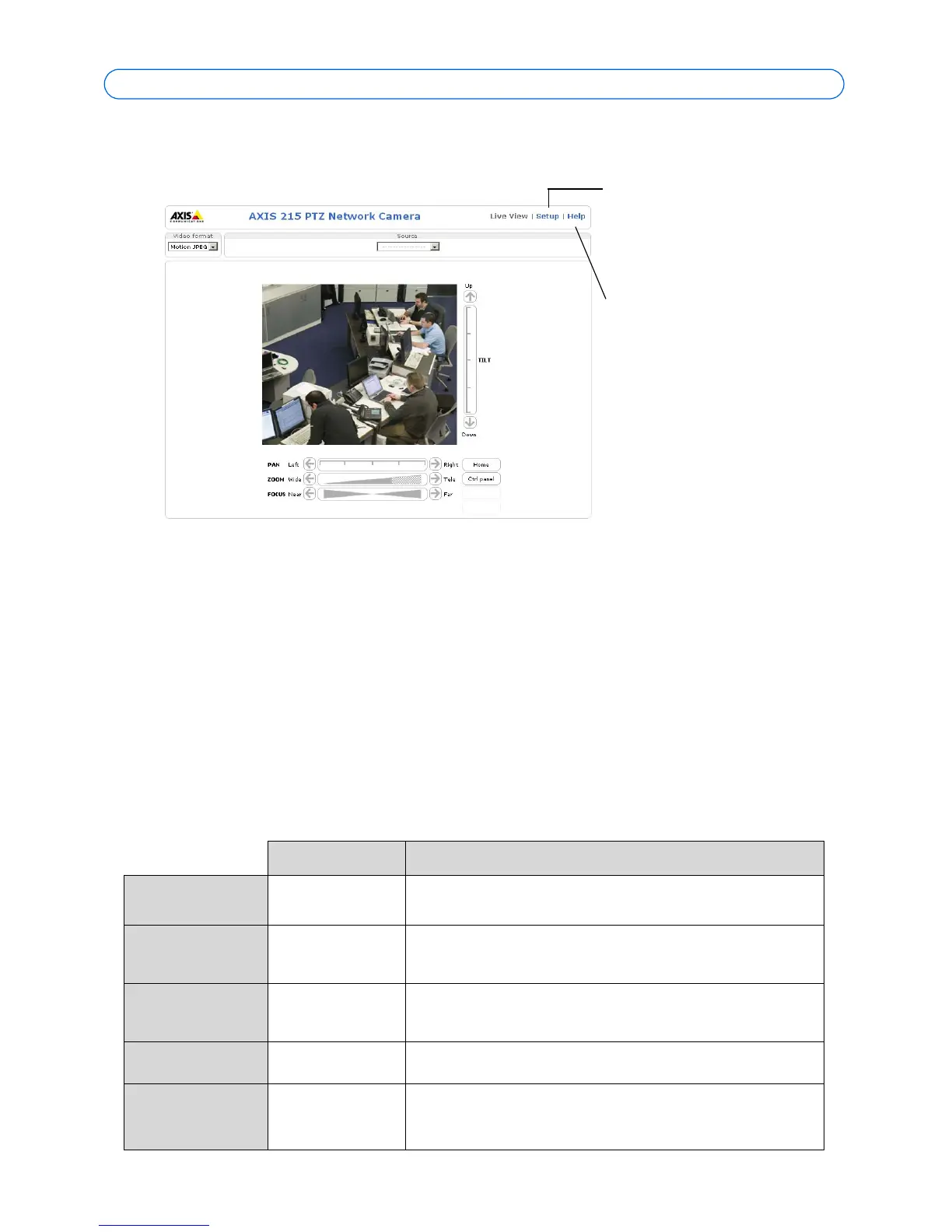 La página Live View de la AXIS 215 PTZ aparece con enlaces a las herramientas de