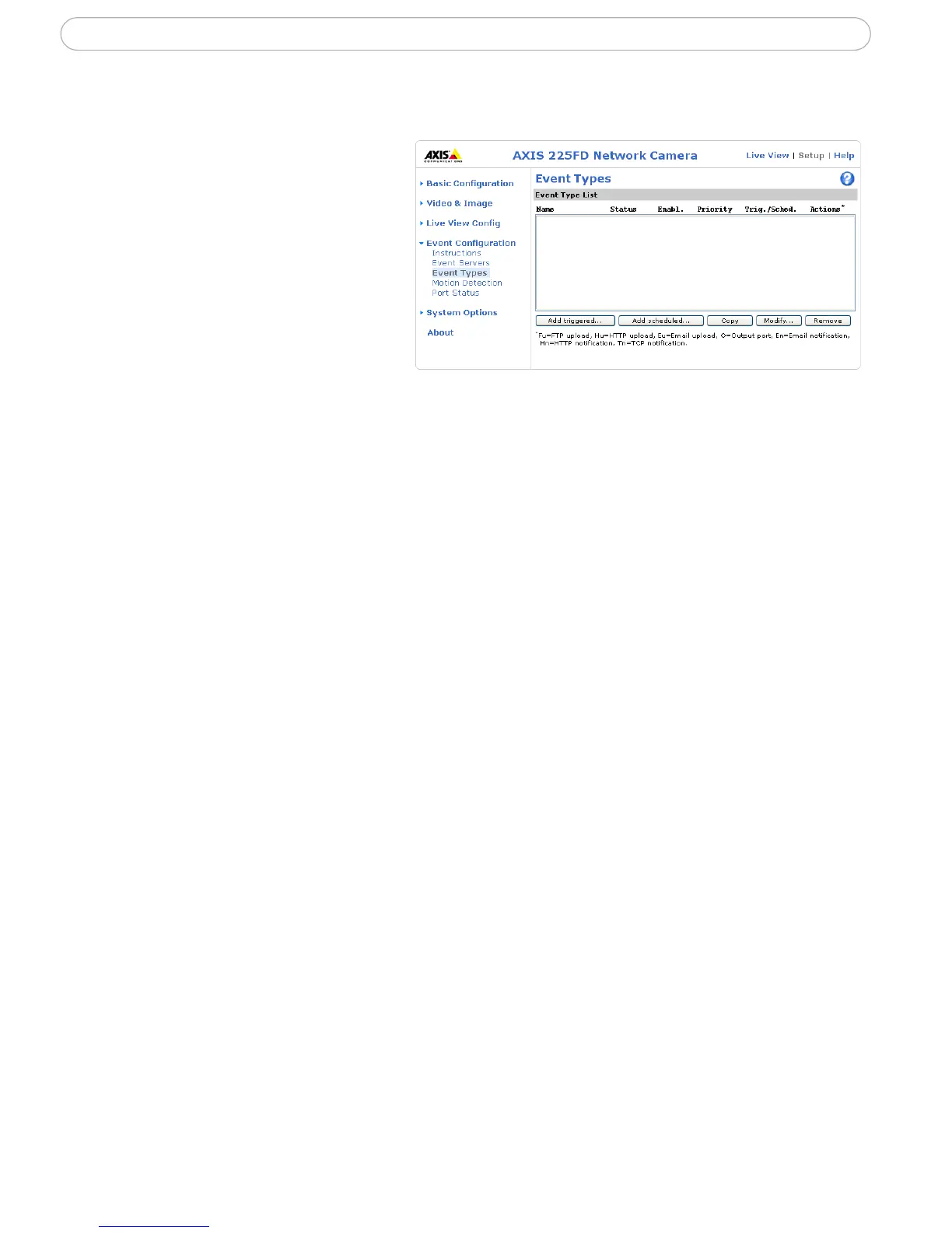 Up to 10 event types can be configured in the camera, and up to 3 of these can be configured to upload