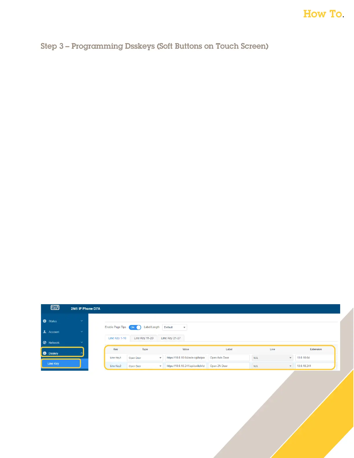 The following steps are performed in the web GUI of the 2N D7A Phone