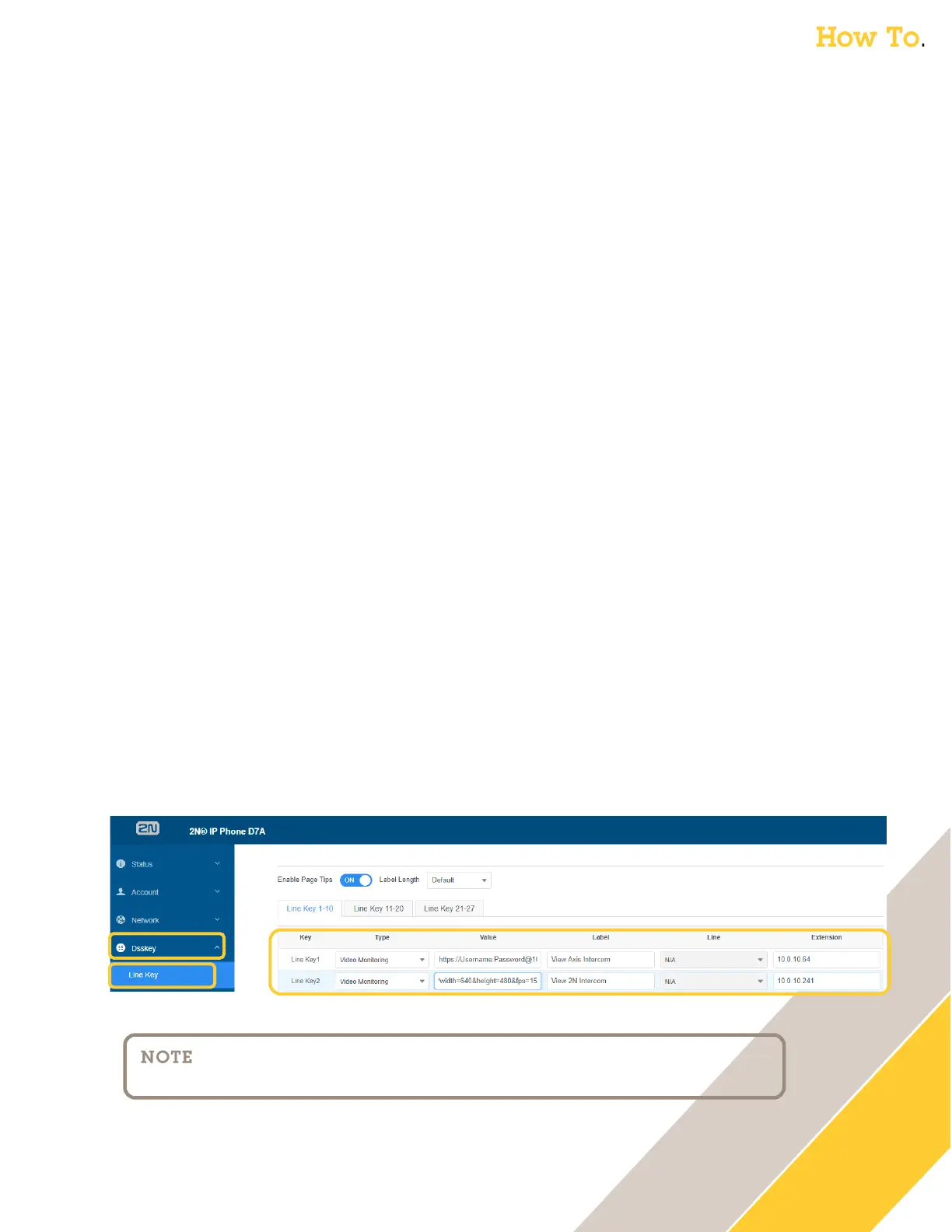The following steps are performed in the web GUI of the 2N D7A Phone