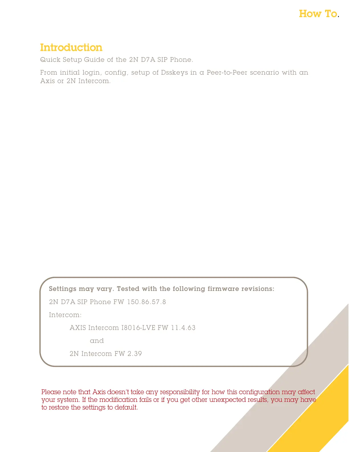 Axis 2N D7A - Introduction to 2 N D7 A SIP Phone Setup