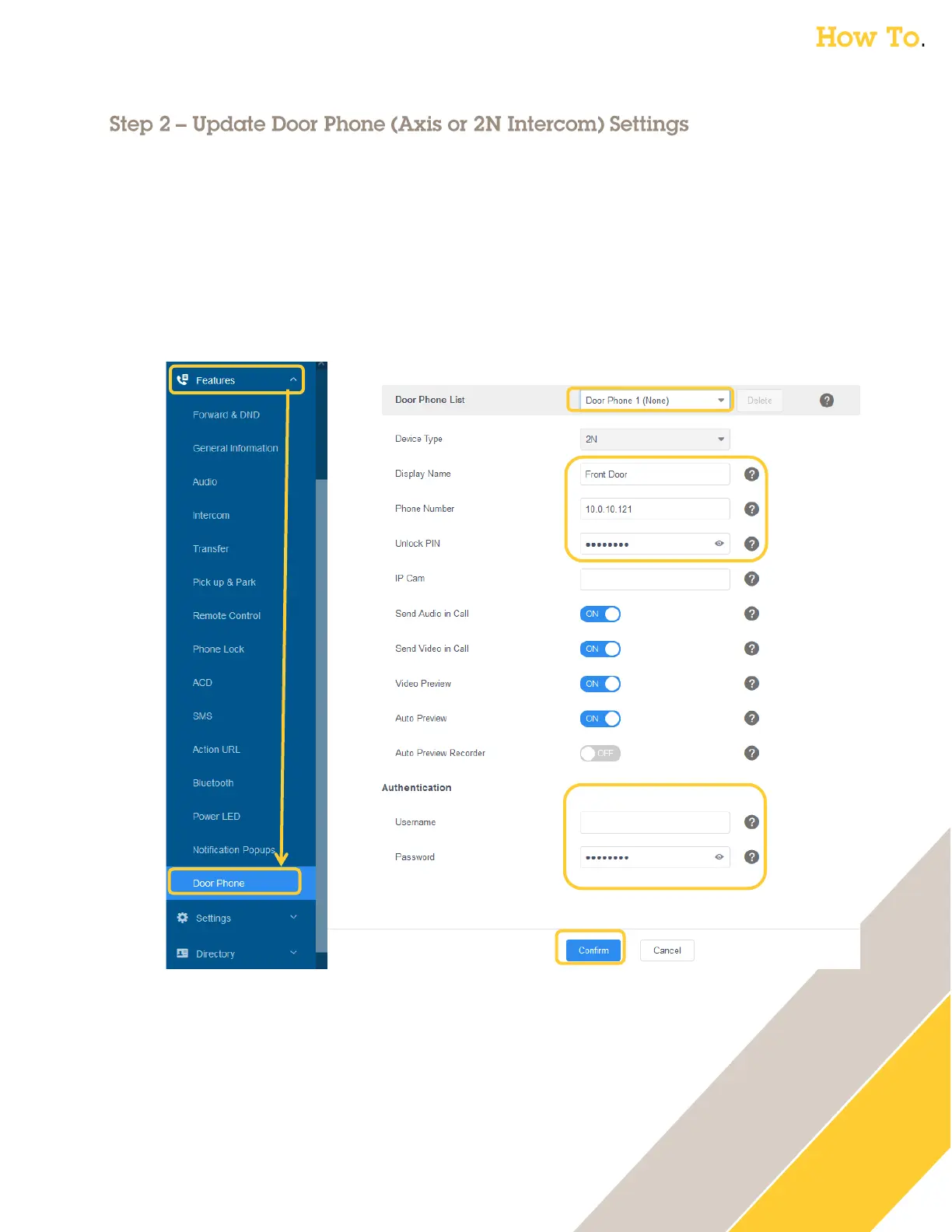 4. Update Phone Number with the IP Address of the Axis or 2N Intercom