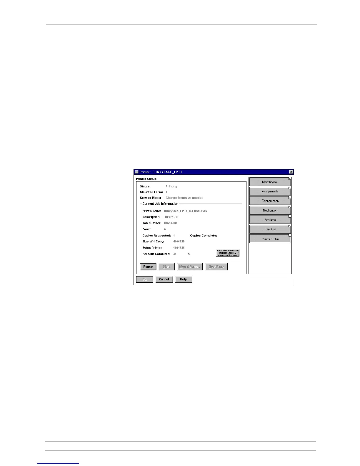 print job serviced by an Axis Network Print Server network print server. It