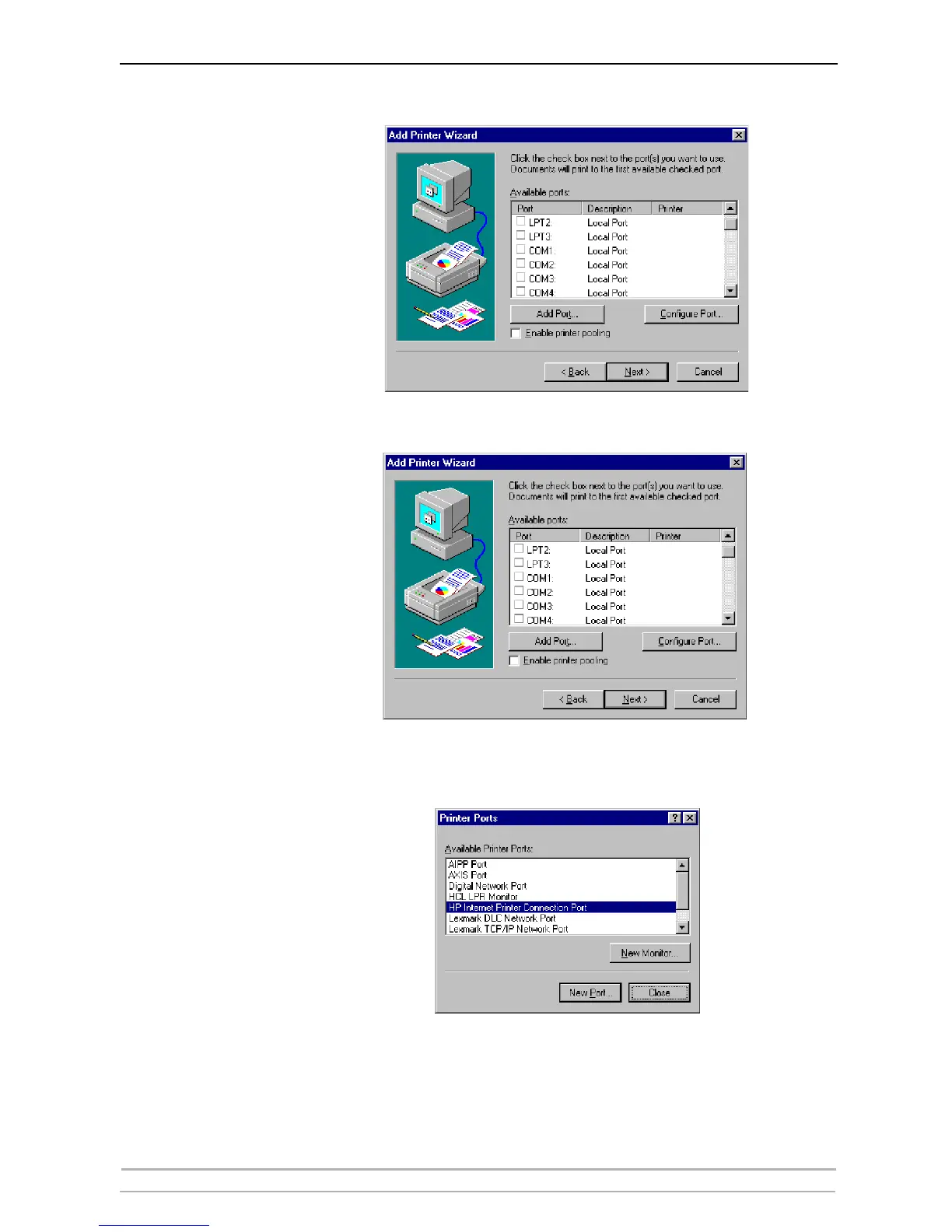 6. The Printer Ports dialog will appear, showing a list of Available Printer