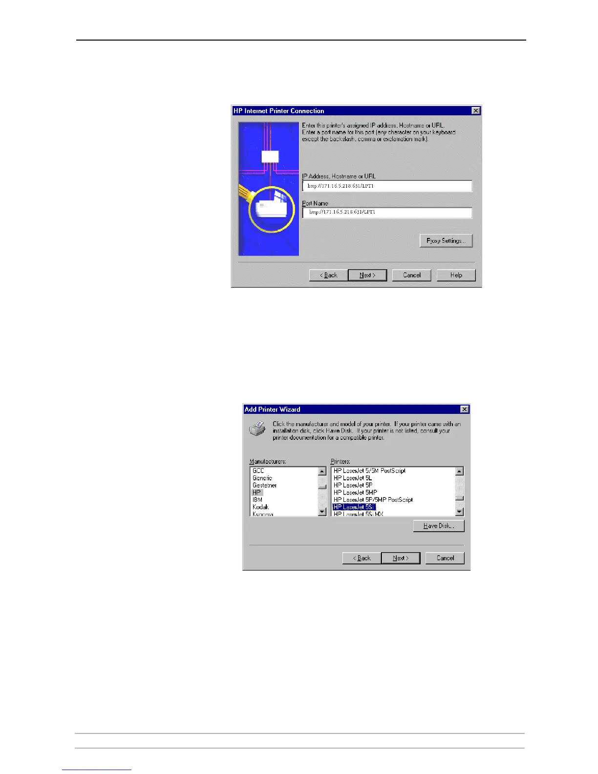 (Example: http://171.16.5.218:631/LPT1 or LPT2). Click Next.