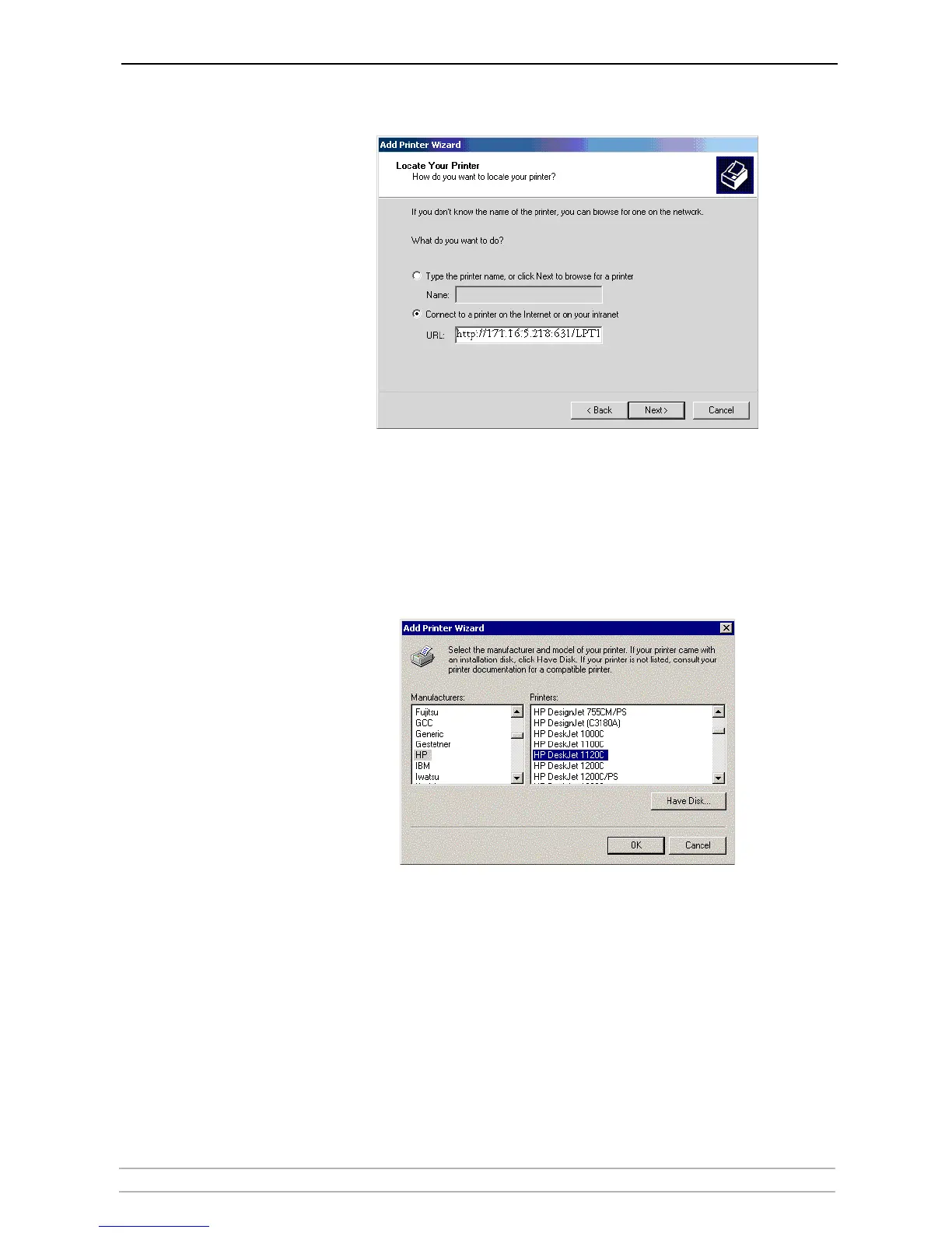 (Example: http://171.16.5.218:631/LPT1 or LPT2)