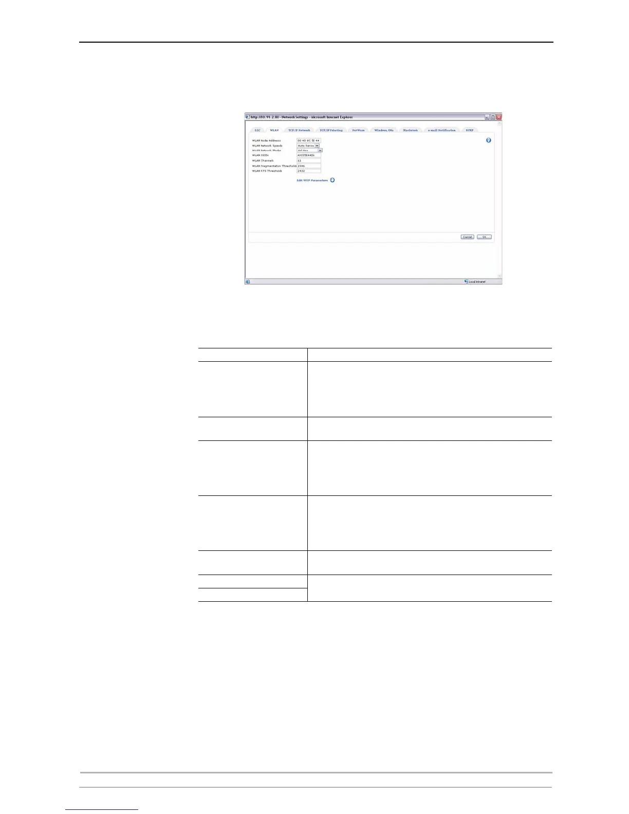 WLAN Parameters Refer to the table below for a description of the WLAN parameter settings