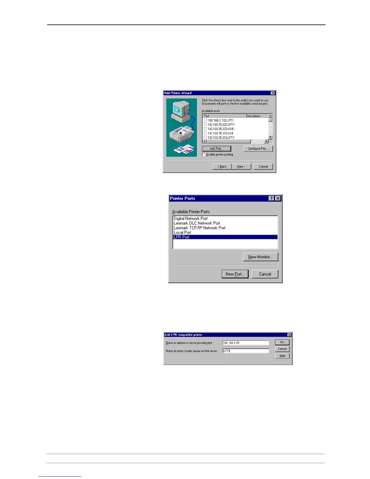 of server providing lpd (Example: 192.168.3.191). Enter which port to use