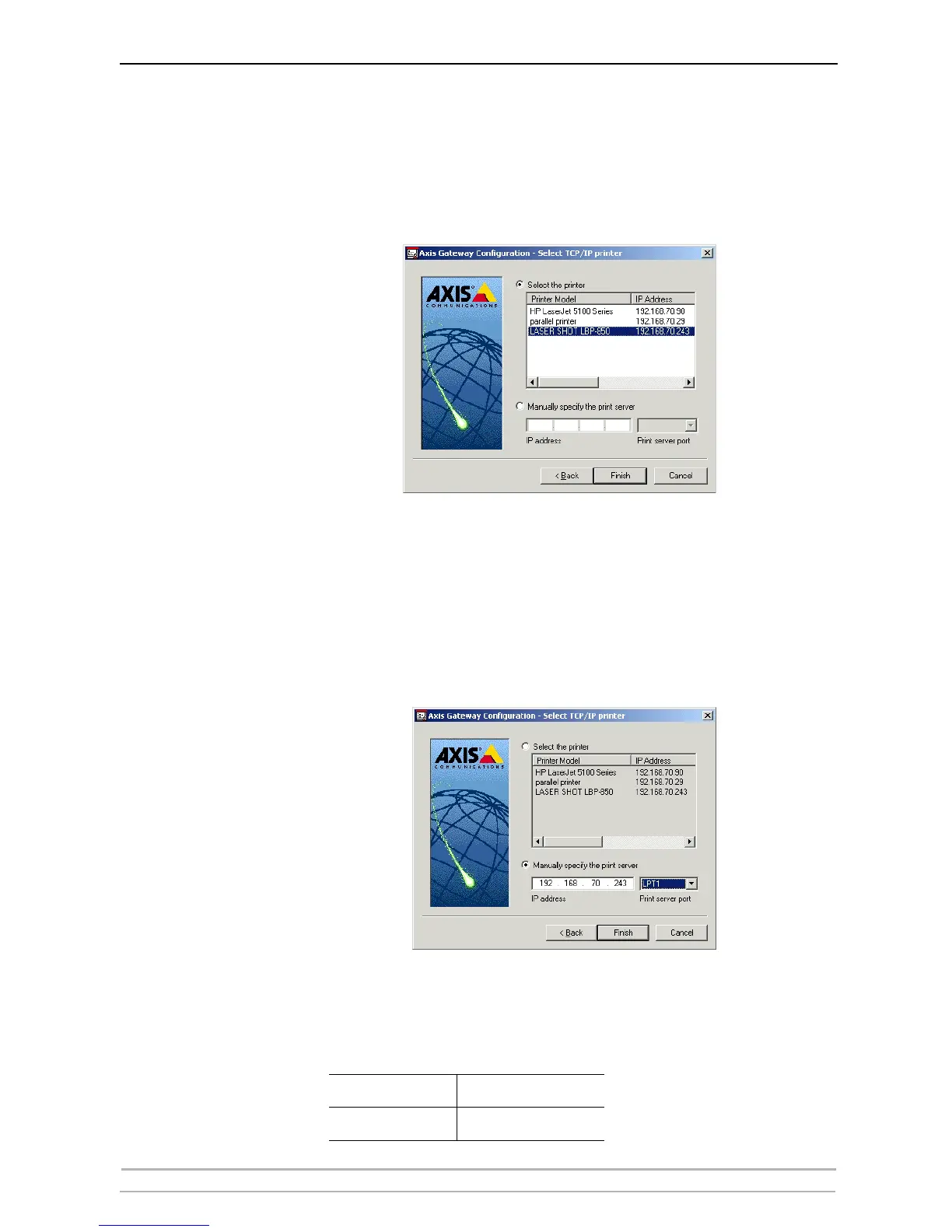 a port in the Print server port field: e.g., 192.168.70.243 and LPT1