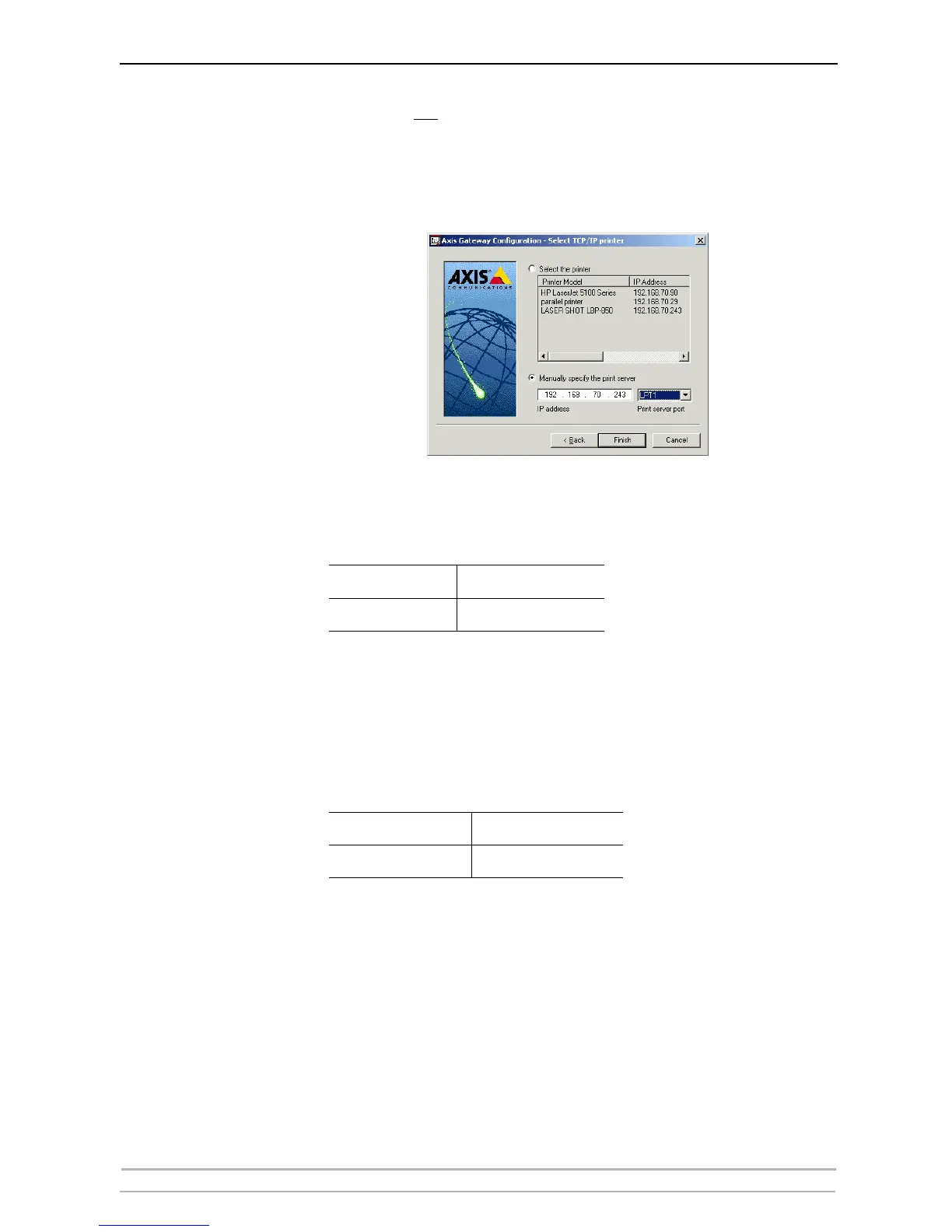e.g., 192.168.70.243 and LPT1 (or LPT2).