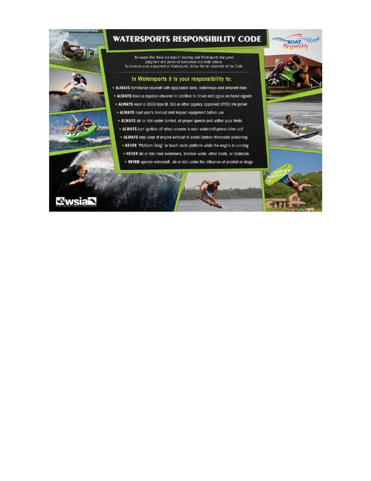 • Turntheengineowhenpeoplearegettingintooroutofthewatercraft,orinthewaternear