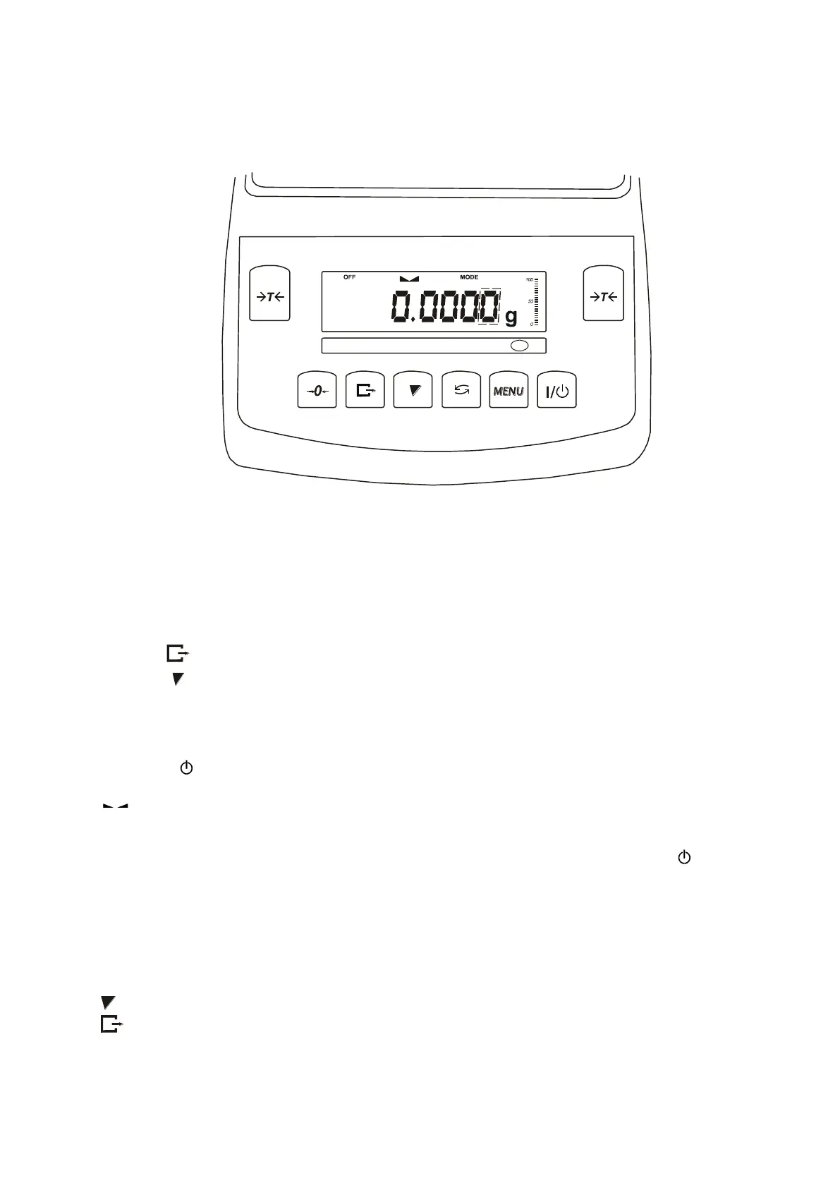 - appears after the balance is switched off with I / key,