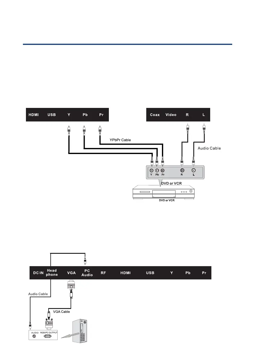 Connect the YPbPr output of the DVD or VCR to the YPbPr input on the set. The picture