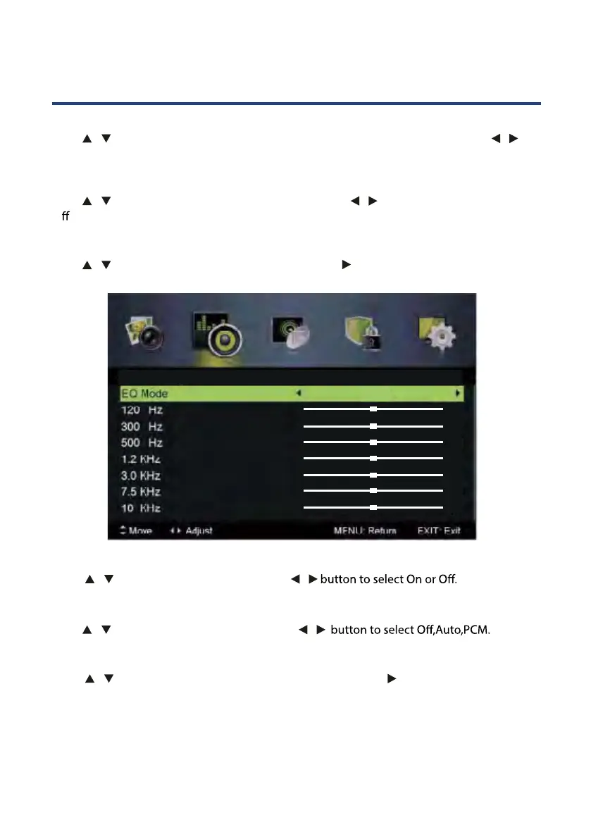 Press / button to select EQ Setting, then press OK / button to enter submenu.