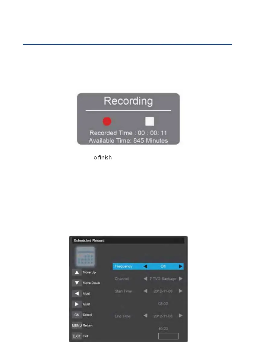 To start the Recording function press REC button in the remote control and the unit will start