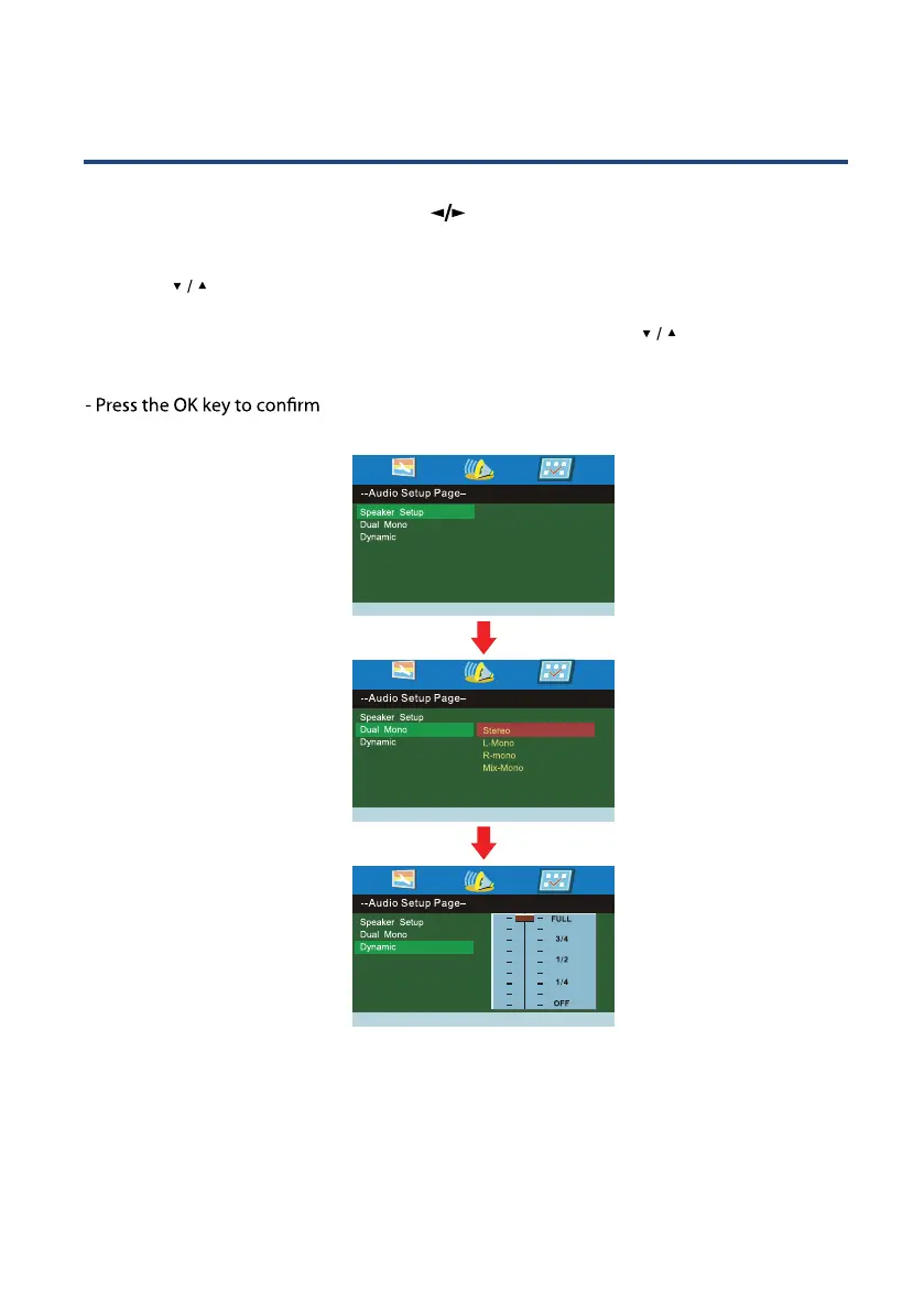 to display the audio setup page when in