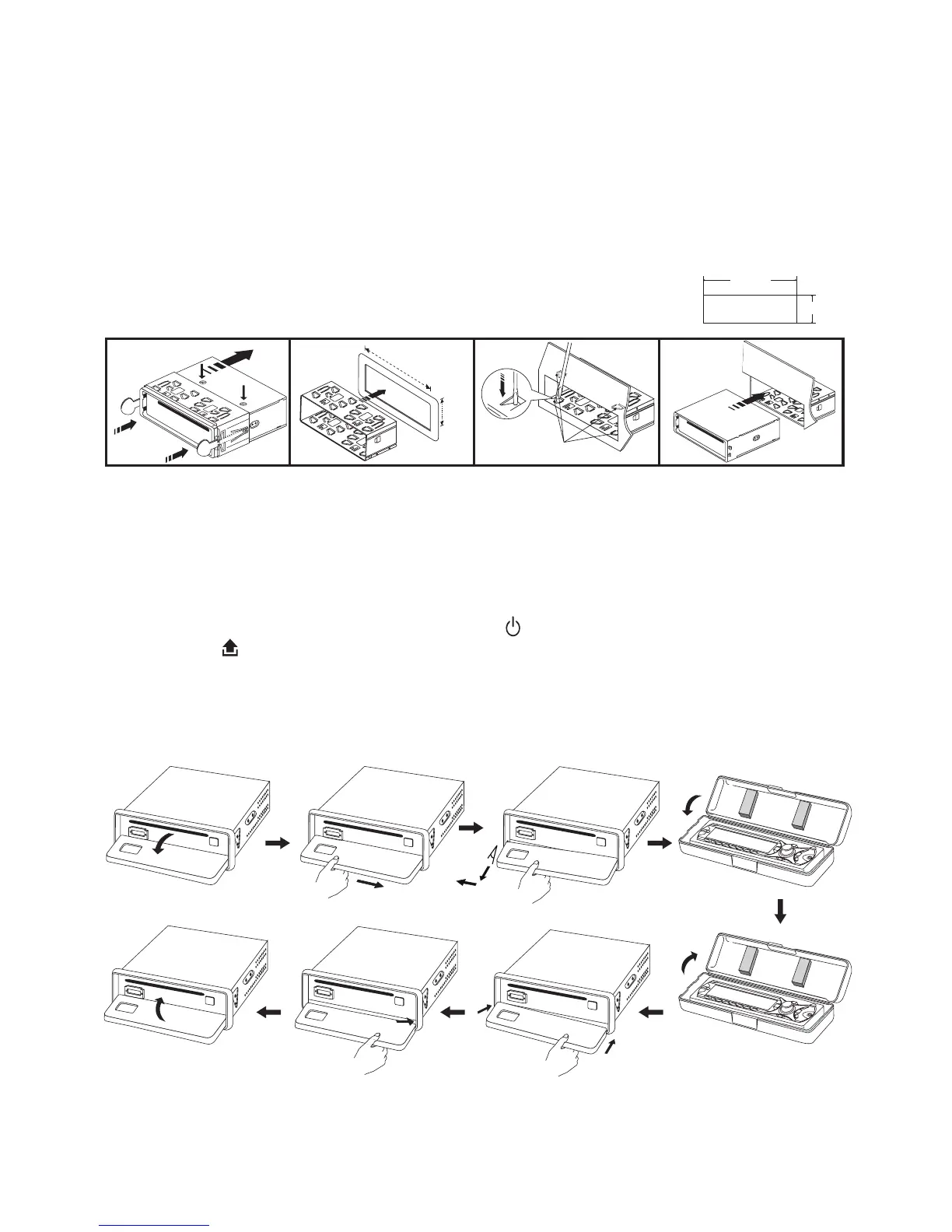 Before detaching the front panel, be sure to press the button (1) OFF rst.