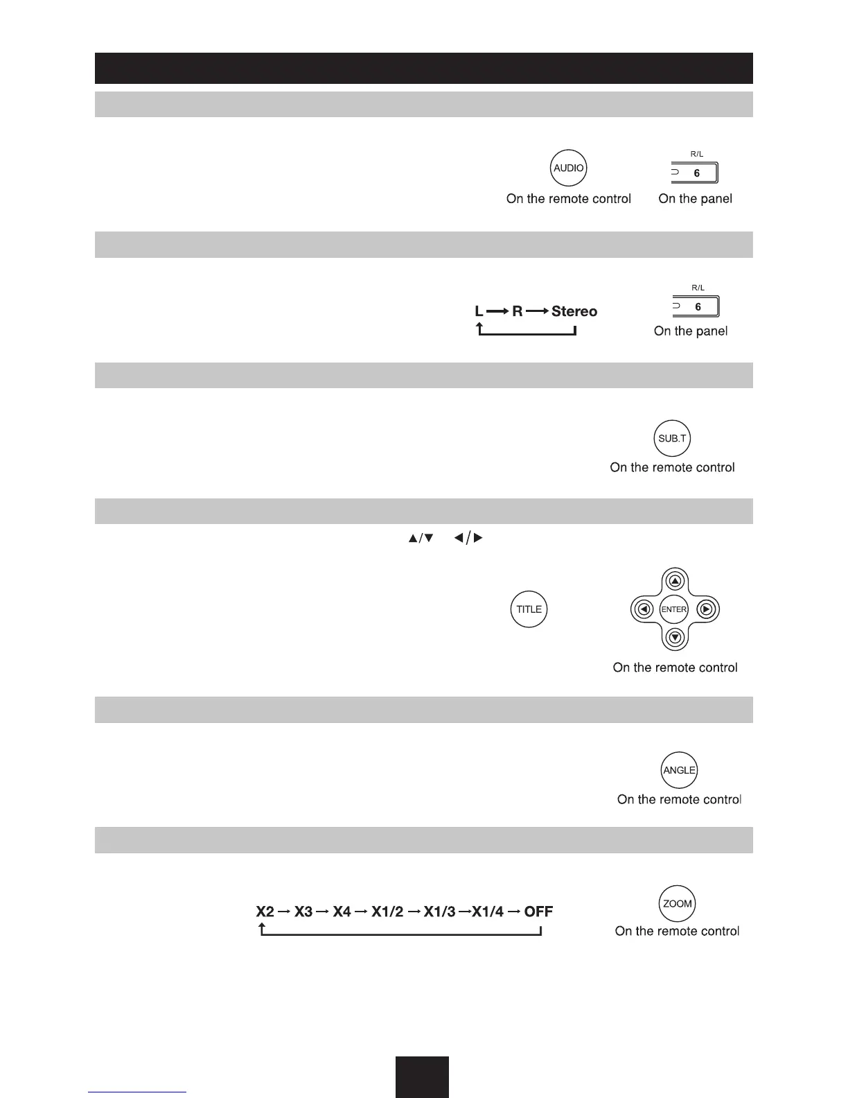 Press AUDIO or R/L to select audio language to listen if the DVD has multiple audio languages.