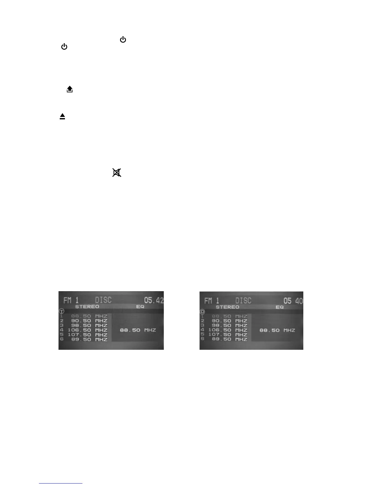 Press EQ to select between Flat – Class – Rock – Pop -- EQ equalizer modes.