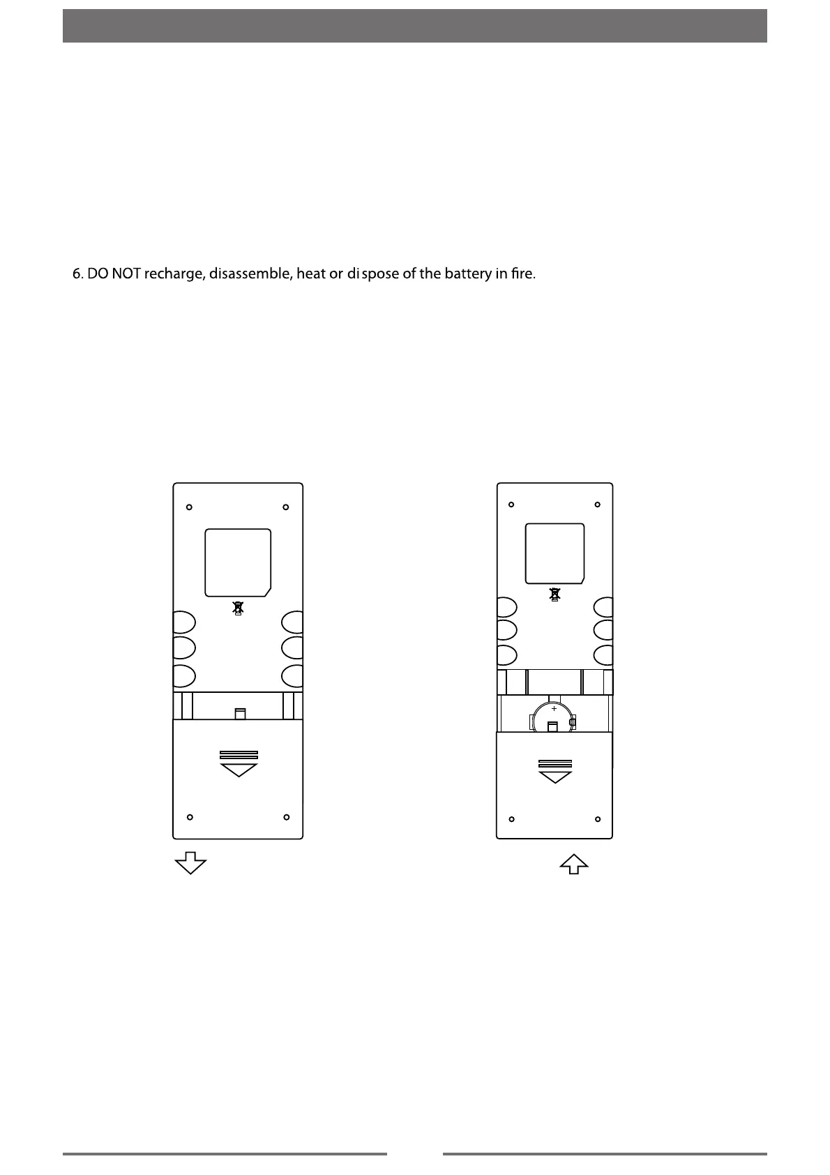 5. Use “button shaped” lithium battery “CR2025”(3V) only.