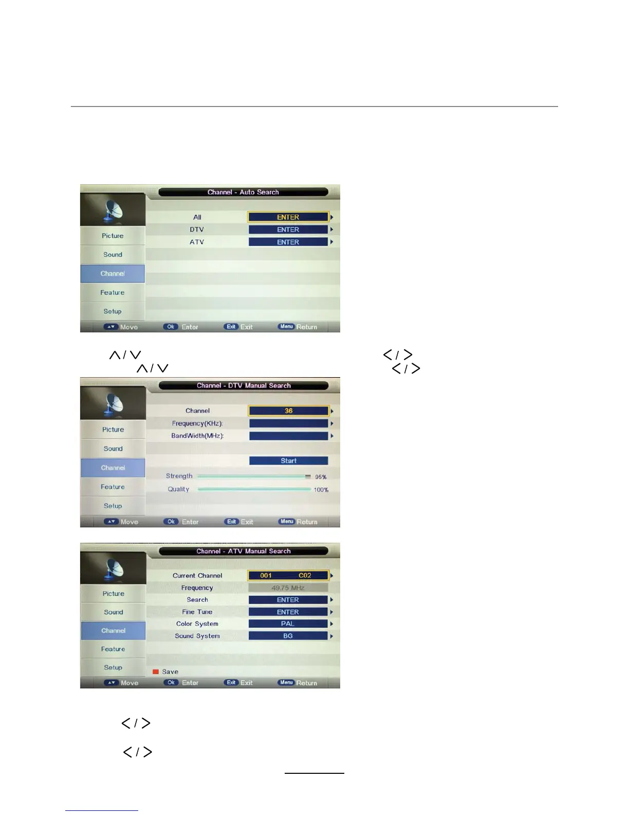 Search:Press OK button to enter the search menu0anualO\ search the frequency