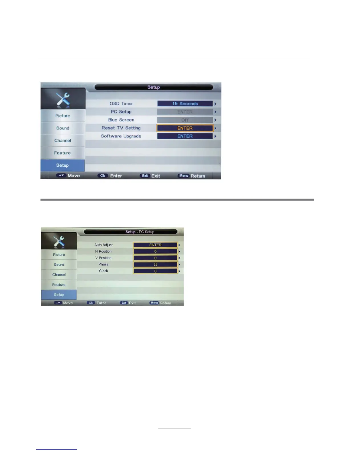 Reset TV Setting - This clears all the TV settings