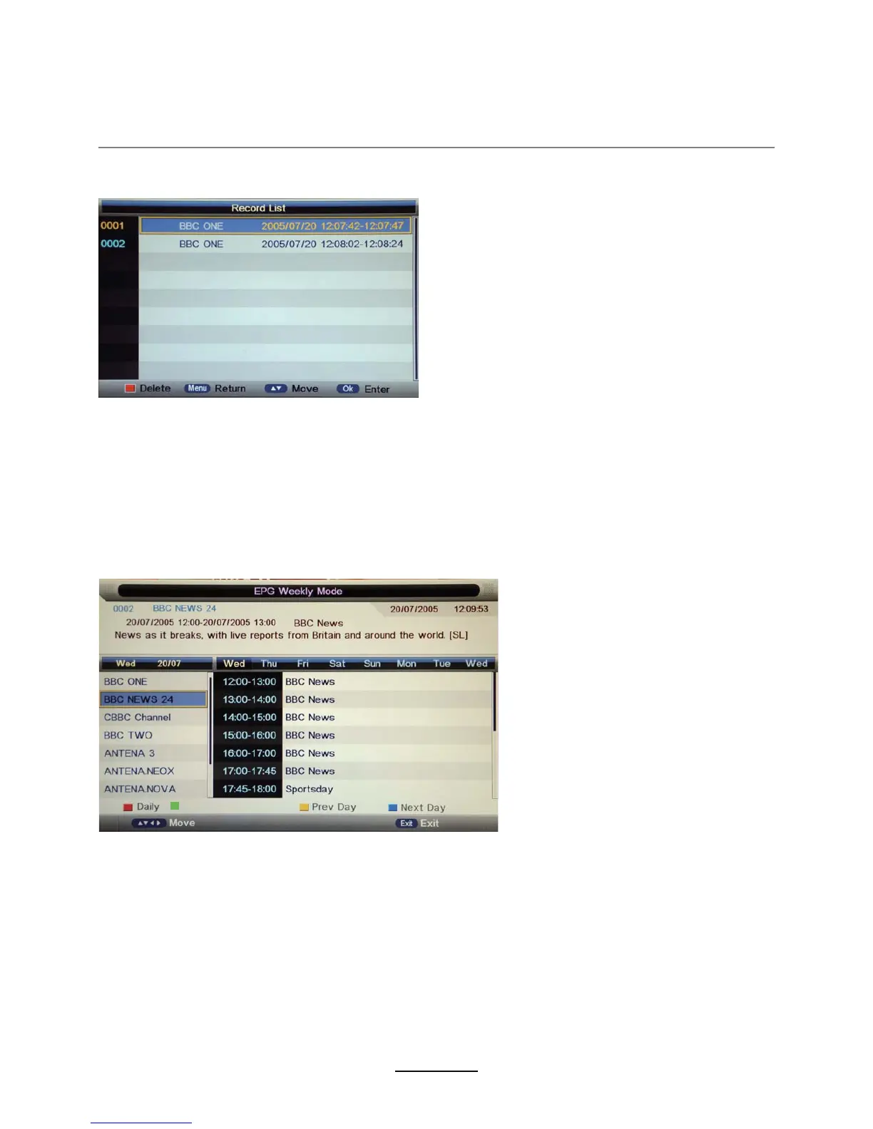 Previous/Next Day: Press YELLOW/BLUE button to display the programs on previous or next day.