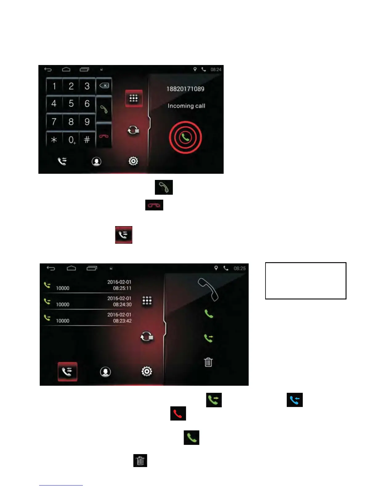 When there is an incoming call, the system will switch to the phone interface