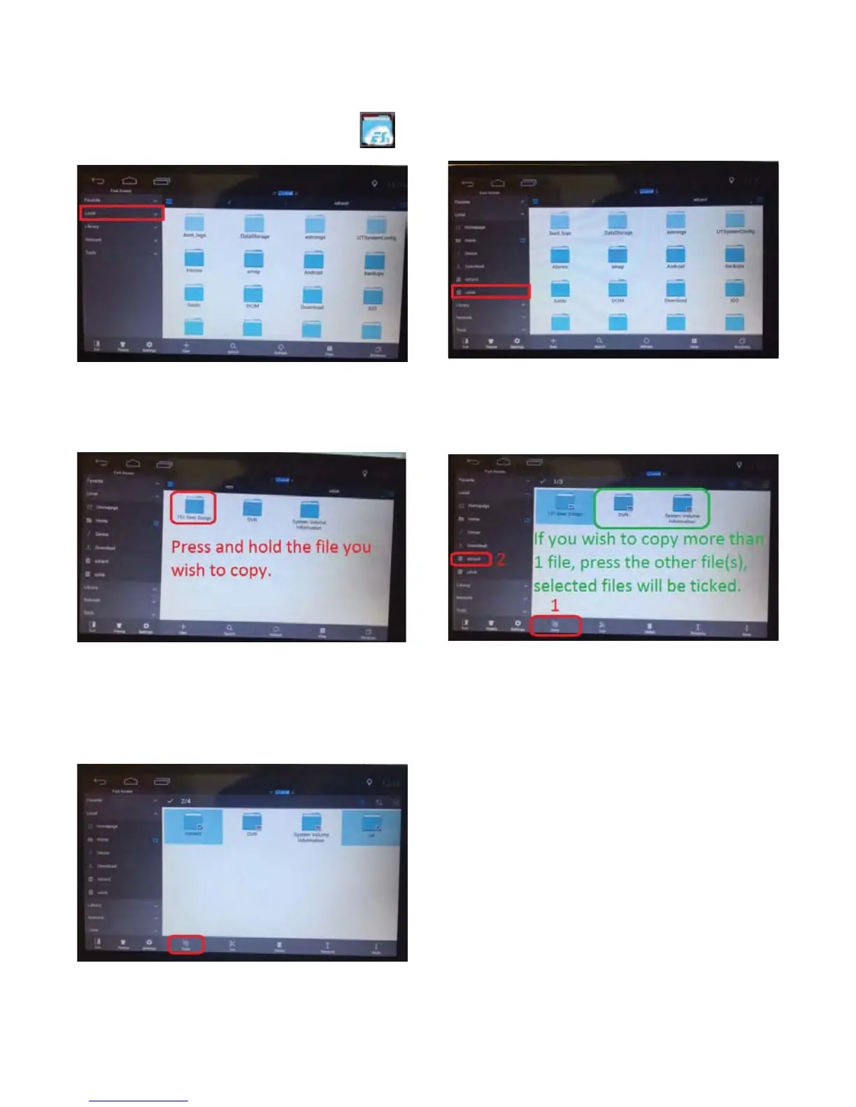 4) Tap “Copy” then “sdcard”.