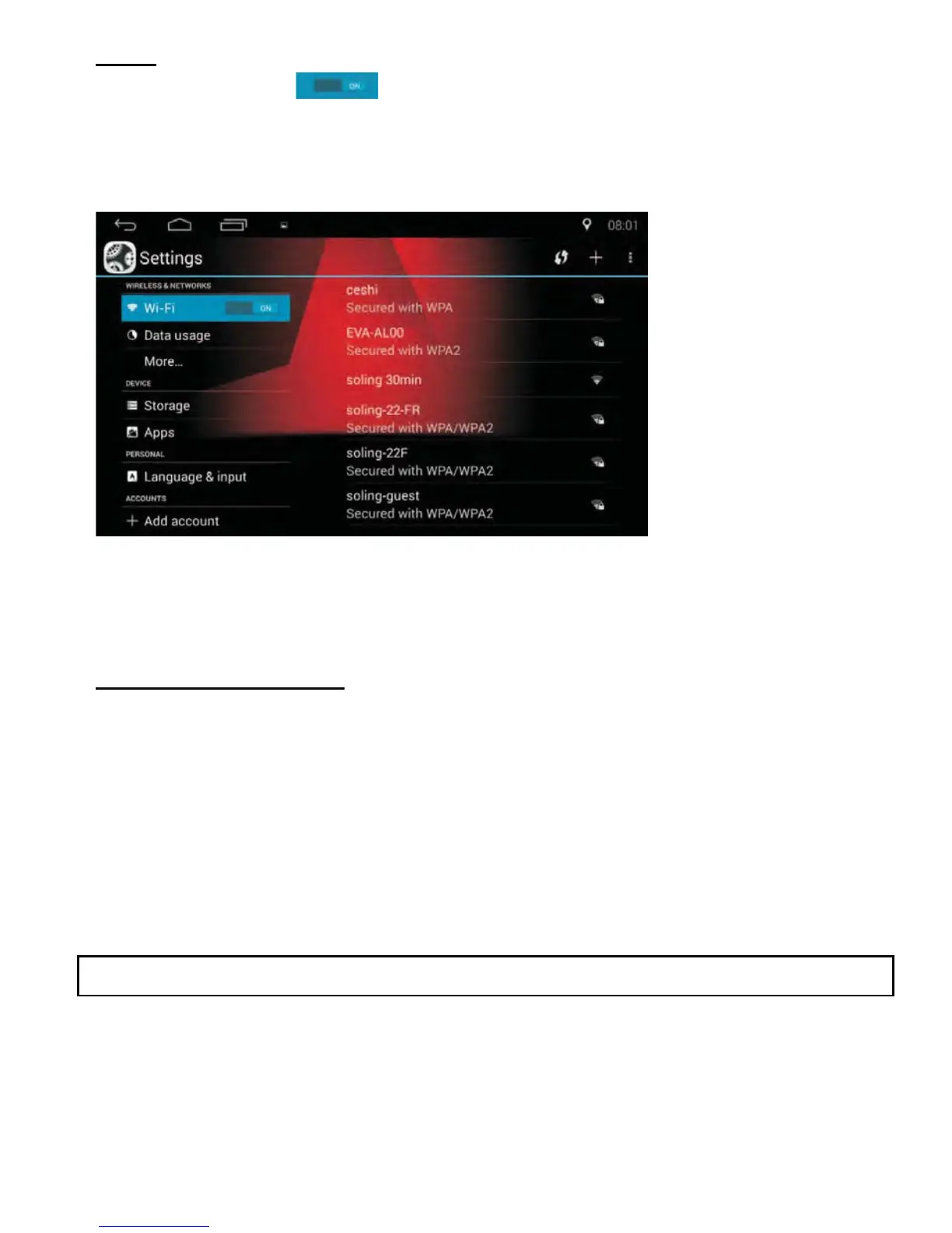 • After turning Wi-Fi on, the unit will search for available WLAN.