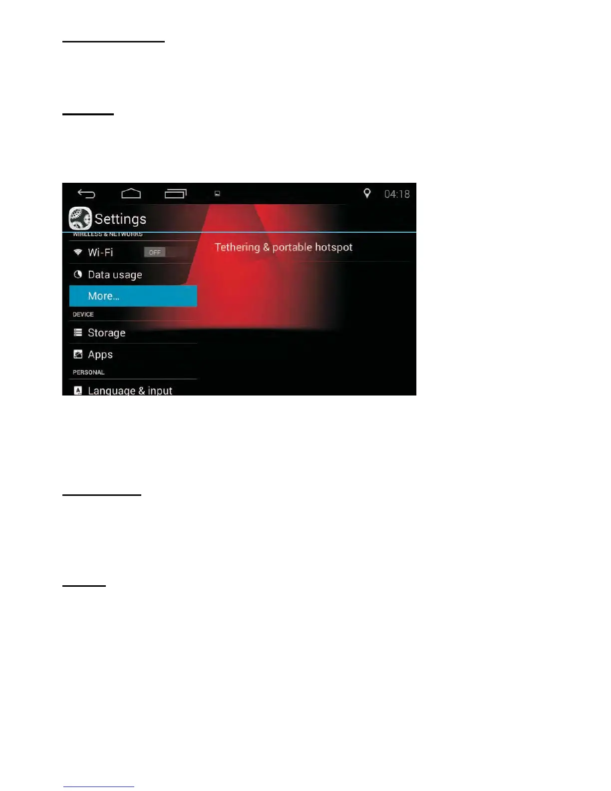 • Tap Tethering & portable hotspot to make the unit a hotspot for other