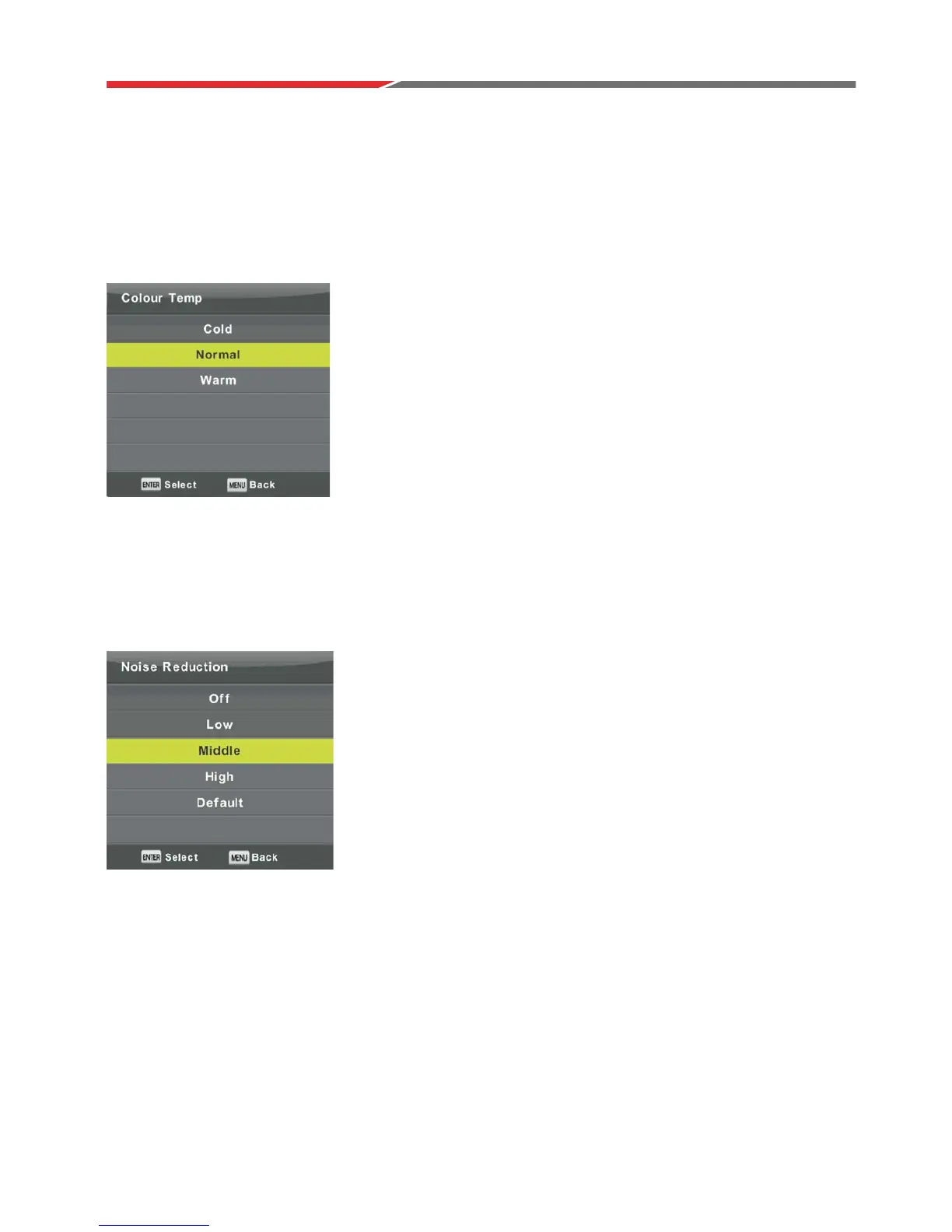 Press button to select Noise Reduction. Then press OK button to enter sub-menu.
