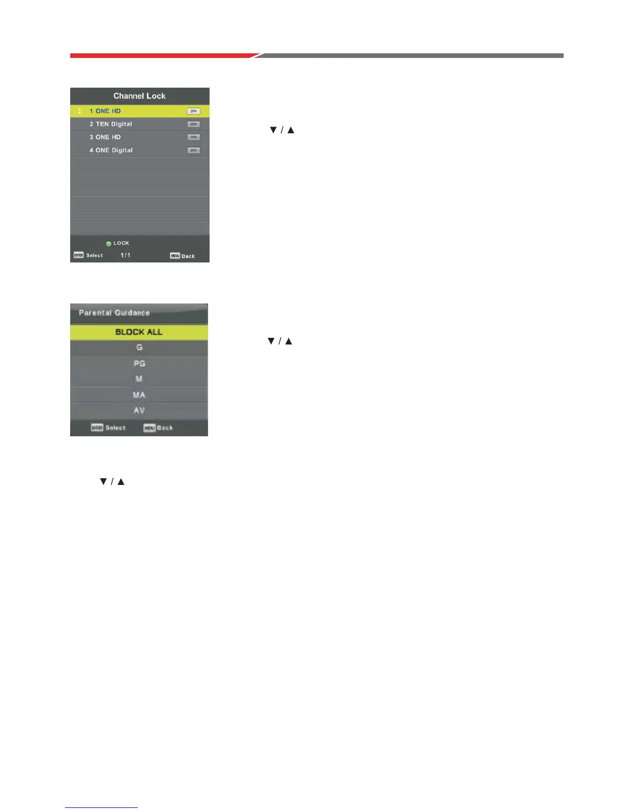 Press button to select Channel Lock,