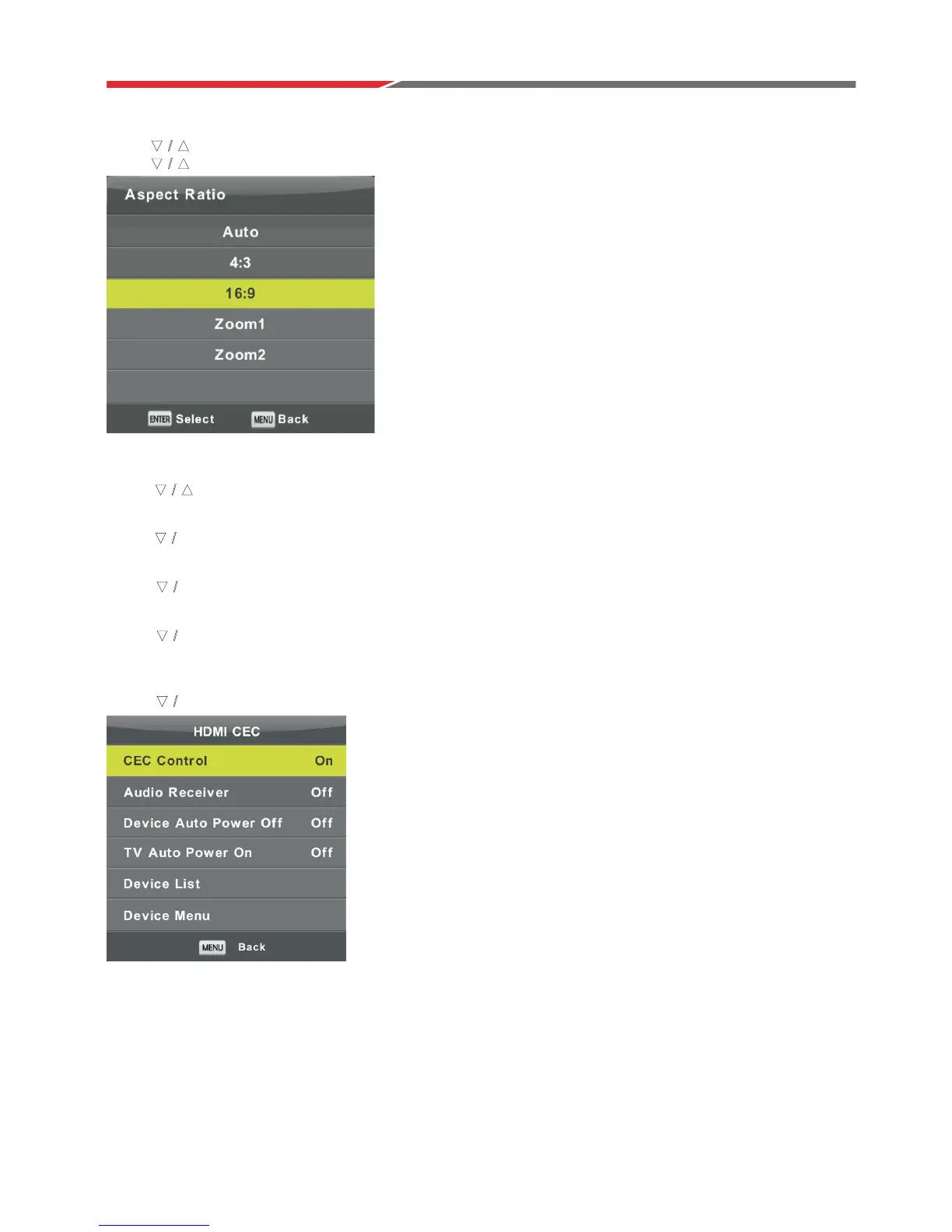 Press button to select HDMI CEC, then press Enter button to enter the sub-menu.