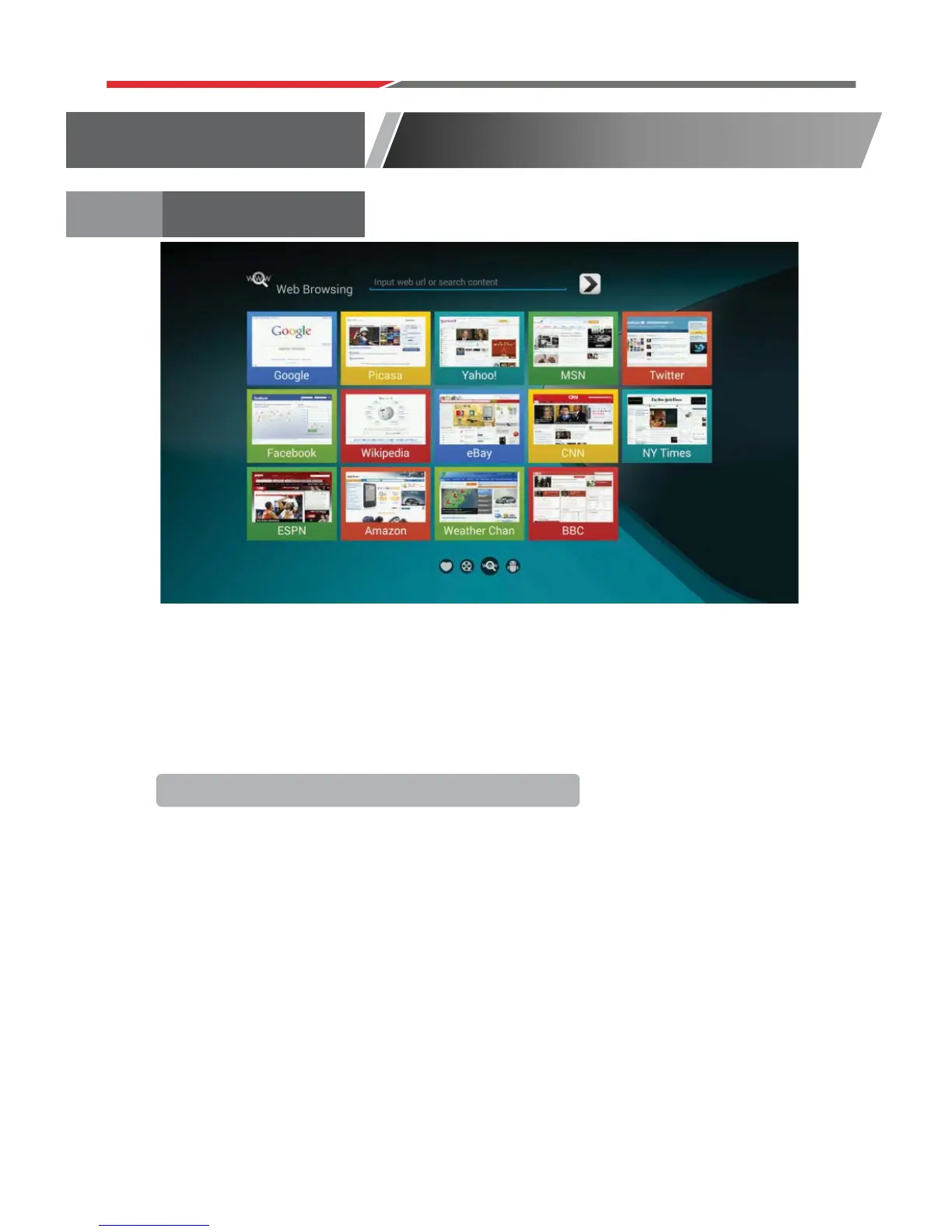 Select the search bar, input the URL or search content and press Enter
