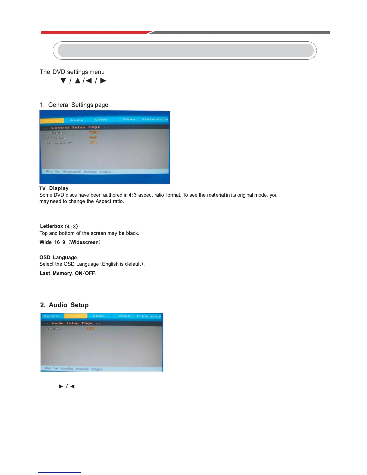 Press until the audio setup page is shown.